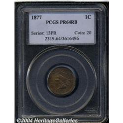 <B>1877<1C> PR64 Red and Brown PCGS.</B></I> Both sides are crisply impressed in all areas with a mostly medium brown appearance. We do, however, note remnants of orange-red luster that are most readily evident over the obverse. Although the mottled toning will not please everyone, there do not appear to be any outwardly noticeable blemishes that would bar this coin from an even higher grade. The proof 1877 remains popular due to the scarcity of the similarly dated business strike Cent in the finer Mint State grades. <BR><BR><B>Important notice:</B> Heritage usually auctions material at the rate of 200-250 lots per hour. On some occasions eBay Live bid software or the Internet may not be able to keep up with the pace of the auction. We recommend placing a realistic absentee bid now as insurance to avoid disappointment. Occasionally the auctioneer may eliminate or reject an eBay Live bid, and the auctioneer may also reopen a lot after the close of the eBay live bidding (usually because we missed an audience bid), and may reject your bid even if it shows you as the winning bidder. By bidding via eBay Live, you agree that Heritage may award the lot to another bidder at its sole discretion under the circumstances described above or any other reasonable circumstances. Since eBay bids are not shown to us until we open the lot on the floor, we treat those bids just like floor bids. In most cases the floor responds before the eBay bid is presented to us, due to Internet lag time, so for consistency we have made it a policy that floor bids are always considered first over tie eBay live bids. Also please note that all Heritage lots purchased through eBay Live carry a 20% Buyer's Premium. Please make sure you read the Terms and Conditions before you bid. </span></font></tr></table></td></tr></table>