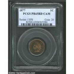 1877 1C PR65 Red, Cameo PCGS. This coin is the only proof 1877 Indian Cent so graded at PCGS, and th