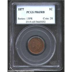 1877 1C PR65 Red and Brown PCGS. The orange-red luster has faded to medium brown patina toward the c