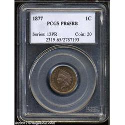 <table><tr><td><TABLE cellSpacing=0 cellPadding=0 width="100%" bgColor=#000000 border=0><TBODY> <TR><TD width="100%"><TABLE cellSpacing=1 cellPadding=3 width="100%" border=0><TBODY><TR><TD width="100%" bgColor=#79735c><FONT face=arial color=#ffffff size=3><B>Description</B> </FONT></TD></TR><TR><TD width="100%" bgColor=#ffffff><FONT face=arial size=2><B>1877 1C PR65 Red and Brown PCGS.</B></I> This issue is not the rarest proof in the long-lived Indian Cent series, but specimens are always in demand due to the paucity of carefully preserved business strikes in today's market. This important Gem is toned in olive-brown patina with remnants of orange-red luster toward the denticles. Certain angles reveal vivid lavender-pink undertones. </FONT></TD></TR></TBODY></TABLE></TD></TR></TBODY></TABLE><BR><A name=PricesRealized></A><TABLE cellSpacing=0 cellPadding=0 width="100%" bgColor=#000000 border=0><TBODY><TR><TD width="100%"><TABLE cellSpacing=1 cellPadding=3 width="100%" border=0><TBODY><TR><TD width="100%" bgColor=#79735c><A name=PR><FONT face=arial color=#ffffff size=3><B>Previous Prices from Heritage Auctions</B> </FONT></A></TD></TR><TR><TD bgColor=#f6f6ed><TABLE cellSpacing=0 cellPadding=0 width="100%" border=1><TBODY><TR><TD align=middle width="33%"><B>Date</B></TD><TD align=middle width="33%"><B>Service</B></TD><TD align=middle width="33%"><B>Price</B></TD></TR><TR bgColor=whitesmoke><TD width="33%"><B>07/29/2003</B></TD><TD width="33%">NGC</TD><TD width="33%">$4,600.00</TD></TR><TR bgColor=whitesmoke><TD width="33%"><B>01/11/2003</B></TD><TD width="33%">PCGS</TD><TD width="33%">$4,025.00</TD></TR><TR bgColor=whitesmoke><TD width="33%"><B>02/23/2002</B></TD><TD width="33%">NGC</TD><TD width="33%">$3,450.00</TD></TR><TR bgColor=whitesmoke><TD width="33%"><B>08/08/2001</B></TD><TD width="33%">PCGS</TD><TD width="33%">$4,140.00</TD></TR><TR bgColor=whitesmoke><TD width="33%"><B>04/05/2001</B></TD><TD width="33%">PCGS</TD><TD width="33%">$4,312.50</TD></TR><TR bgColor=whitesmoke><TD width="33%"><B>06/10/2000</B></TD><TD width="33%">NGC</TD><TD width="33%">$5,980.00</TD></TR><TR bgColor=whitesmoke><TD width="33%"><B>01/09/2002</B></TD><TD width="33%">PCGS</TD><TD width="33%">$4,312.00</TD></TR><TR bgColor=whitesmoke><TD width="33%"><B>01/01/2001</B></TD><TD width="33%">NGC</TD><TD width="33%">$3,680.00</TD></TR><TR bgColor=whitesmoke><TD width="33%"><B>10/01/1998</B></TD><TD width="33%">NGC</TD><TD width="33%">$3,740.00</TD></TR><TR bgColor=whitesmoke><TD width="33%"><B>09/01/1999</B></TD><TD width="33%">NGC</TD><TD width="33%">$3,680.00</TD></TR><TR bgColor=whitesmoke><TD width="33%"><B>06/01/1998</B></TD><TD width="33%">NGC</TD><TD width="33%">$3,025.00</TD></TR><TR bgColor=whitesmoke><TD width="33%"><B>03/01/1999</B></TD><TD width="33%">NGC</TD><TD width="33%">$3,450.00</TD></TR><TR bgColor=whitesmoke><TD width="33%"><B>03/01/1999</B></TD><TD width="33%">NGC</TD><TD width="33%">$4,830.00</TD></TR><TR bgColor=whitesmoke><TD width="33%"><B>03/01/1997</B></TD><TD width="33%">PCGS</TD><TD width="33%">$2,145.00</TD></TR></TBODY></TABLE></TD></TR><TR><TD bgColor=#ffffff><FONT face=arial size=1 ?>PLEASE NOTE: All prices realized reflect the final hammer price PLUS the buyer's premium in auctions that charge a buyer's premium. Each item has a notation at the top of the listing indicating whether that lot included a buyer's premium. Example: A item that sells with a final hammer price of $100 and a 20% buyer's premium will display with a price realized of $120. All information listed is intended to be as accurate as possible, but errors are possible. Please use this guide carefully and inform us of any inaccuracies. </FONT></TD></TR></TBODY></TABLE></TD></TR></TBODY></TABLE><BR><TABLE cellSpacing=0 cellPadding=0 width="100%" bgColor=#000000 border=0><TBODY><TR><TD width="100%"><TABLE cellSpacing=1 cellPadding=3 width="100%" border=0><TBODY><TR><TD width="100%" bgColor=#79735c colSpan=6><FONT face=arial color=#ffffff size=3><B>Price Guide*</B> </FONT></TD></TR><TR bgColor=#f6f6ed><TD align=middle><B>Grade</B> </TD><TD align=middle><B>Coin World<BR>(Trends)</B> </TD><TD align=middle><B>Numismedia<BR>Retail</B> </TD><TD align=middle><B>Numismedia<BR>Wholesale</B> </TD><TD align=middle><B>Coin<BR>Universe</B> </TD><TD align=middle><B>Heritage<BR>Value Index</B> </TD></TR><TR bgColor=#ffffff><TD align=middle>64</TD><TD align=right>---</TD><TD align=right>---</TD><TD align=right>$2,875.00</TD><TD align=right>$3,850.00</TD><TD align=right>$2,623.33</TD></TR><TR style="FONT-WEIGHT: bold" bgColor=#cccfdd><TD align=middle>65</TD><TD align=right>---</TD><TD align=right>---</TD><TD align=right>$4,650.00</TD><TD align=right>$6,500.00</TD><TD align=right>$4,333.33</TD></TR><TR bgColor=#ffffff><TD align=middle>66</TD><TD align=right>---</TD><TD align=right>---</TD><TD align=right>$6,125.00</TD><TD align=right>$10,000.00</TD><TD align=right>$6,000.00</TD></TR><TR bgColor=#ffffff><TD colSpan=6><FONT size=1>*All information listed is intended to be as accurate as possible, but errors are possible. No item may be returned or refused based on this information which is provided as a service to our customers. You should contact each pricing source directly to determine the accuracy of this information. </FONT></TD></TR></TBODY></TABLE></TD></TR></TBODY></TABLE><BR><TABLE cellSpacing=0 cellPadding=0 width="100%" bgColor=#000000 border=0><TBODY><TR><TD width="100%"><TABLE cellSpacing=1 cellPadding=3 width="100%" border=0><TBODY><TR><TD width="100%" bgColor=#79735c><FONT face=arial color=#ffffff size=3><B>Population Guide</B> </FONT></TD></TR><TR bgColor=#ffffff><TD align=middle><!-- Begin Output of Population Grid--><TABLE cellSpacing=0 cellPadding=0 width="100%" border=0><TBODY><TR><TD vAlign=center><TABLE cellSpacing=0 width="100%" border=1 cellsadding="3"><TBODY><TR><TD vAlign=center><TABLE cellSpacing=0 cellPadding=3 width="100%" border=1><TBODY><TR><TD vAlign=center align=middle bgColor=#f0f1e8 colSpan=2 <CENTER>