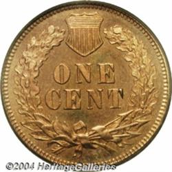 <table><tr><td><table><tr><td>1877 1C PR66 Red PCGS. The smooth sheen on both sides of this important 1877 cent allows full appreciation of the rich cherry-red luster with a noticeably deeper appearance on the reverse. Both sides display razor sharp striking definition throughout, and the surfaces are expectantly free of distracting carbon for the PR66 level of preservation. A small amount of noticeable die rotation is noted, that being somewhat unusual on this proof issue. The 1877 is not appreciably rarer than any of the other proof Indian cents from this decade. As specialists know, however, this issue is under extreme collector pressure due to the key date status of the business strike 1877 cent. Expect strong bidder competition for this premium quality Gem. Population: 10 in 66, 2 finer (2/04). <BR><BR><B>Important notice:</B> Heritage usually auctions material at the rate of 200-250 lots per hour. On some occasions eBay Live bid software or the Internet may not be able to keep up with the pace of the auction. We recommend placing a realistic absentee bid now as insurance to avoid disappointment. Occasionally the auctioneer may eliminate or reject an eBay Live bid, and the auctioneer may also reopen a lot after the close of the eBay live bidding (usually because we missed an audience bid), and may reject your bid even if it shows you as the winning bidder. By bidding via eBay Live, you agree that Heritage may award the lot to another bidder at its sole discretion under the circumstances described above or any other reasonable circumstances. Since eBay bids are not shown to us until we open the lot on the floor, we treat those bids just like floor bids. In most cases the floor responds before the eBay bid is presented to us, due to Internet lag time, so for consistency we have made it a policy that floor bids are always considered first over tie eBay live bids. Also please note that all Heritage lots purchased through eBay Live carry a 20% Buyer's Premium. Please make sure you read the Terms and Conditions before you bid. <BR><BR><B>IMPORTANT ANNOUNCEMENT ABOUT RESERVES:</B> Heritage now divulges all reserves on its web site 7 days before every auction. If you want to know whether the reserve on this lot has been met, and if not, what the reserve amount is, please visit this lot page on the HeritageCoin.com web site, or email: bid@HeritageGalleries.com </span></font></td></tr></table></td></tr></table>