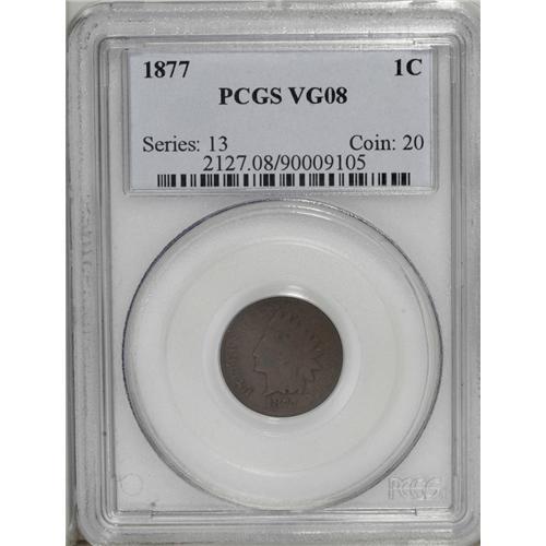 <B>1877<1C> VG8 PCGS.</B></I> Parts of all seven letters in LIBERTY are visible on this chocolate-brown coin. On the problem-free reverse, the N in ONE has its signature weakness at the lower right corner.<BR><I>From The Tide Collection.</B></I>
