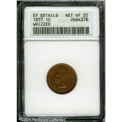 1877 1C --Whizzed--ANACS. XF Details, Net VF20. Thi <B>1877 1C --Whizzed--ANACS. XF Details, Net VF20.</B></I> This piece actually has extra fine details, along with bright carrot-red color and a few small abrasions. The coin has a somewhat unnatural appearance, from having been "whizzed." <BR><BR><B>Important notice:</B> Heritage usually auctions material at the rate of 200-250 lots per hour. On some occasions eBay Live bid software or the Internet may not be able to keep up with the pace of the auction. We recommend placing a realistic absentee bid now as insurance to avoid disappointment. Occasionally the auctioneer may eliminate or reject an eBay Live bid, and the auctioneer may also reopen a lot after the close of the eBay live bidding (usually because we missed an audience bid), and may reject your bid even if it shows you as the winning bidder. By bidding via eBay Live, you agree that Heritage may award the lot to another bidder at its sole discretion under the circumstances described above or any other reasonable circumstances. Since eBay bids are not shown to us until we open the lot on the floor, we treat those bids just like floor bids. In most cases the floor responds before the eBay bid is presented to us, due to Internet lag time, so for consistency we have made it a policy that floor bids are always considered first over tie eBay live bids. Also please note that all Heritage lots purchased through eBay Live carry a 20% Buyer's Premium. Please make sure you read the Terms and Conditions before you bid. This lot is being auctioned in conjunction with a live floor auction by Heritage Galleries & Auctioneers. All final auction and invoice information will be supplied by Heritage Galleries & Auctioneers, and all other information should be considered preliminary. Lot:5091