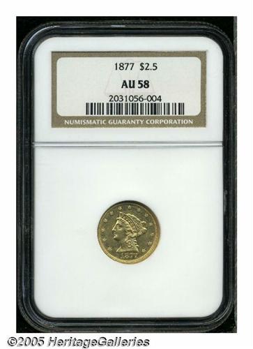 1877 $2 1/2 AU58 NGC. Only 1,632 business strikes