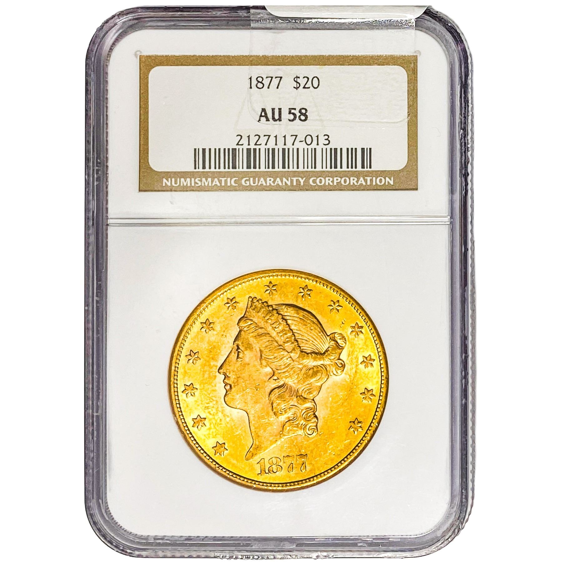 1877 $20 Gold Double Eagle NGC AU58