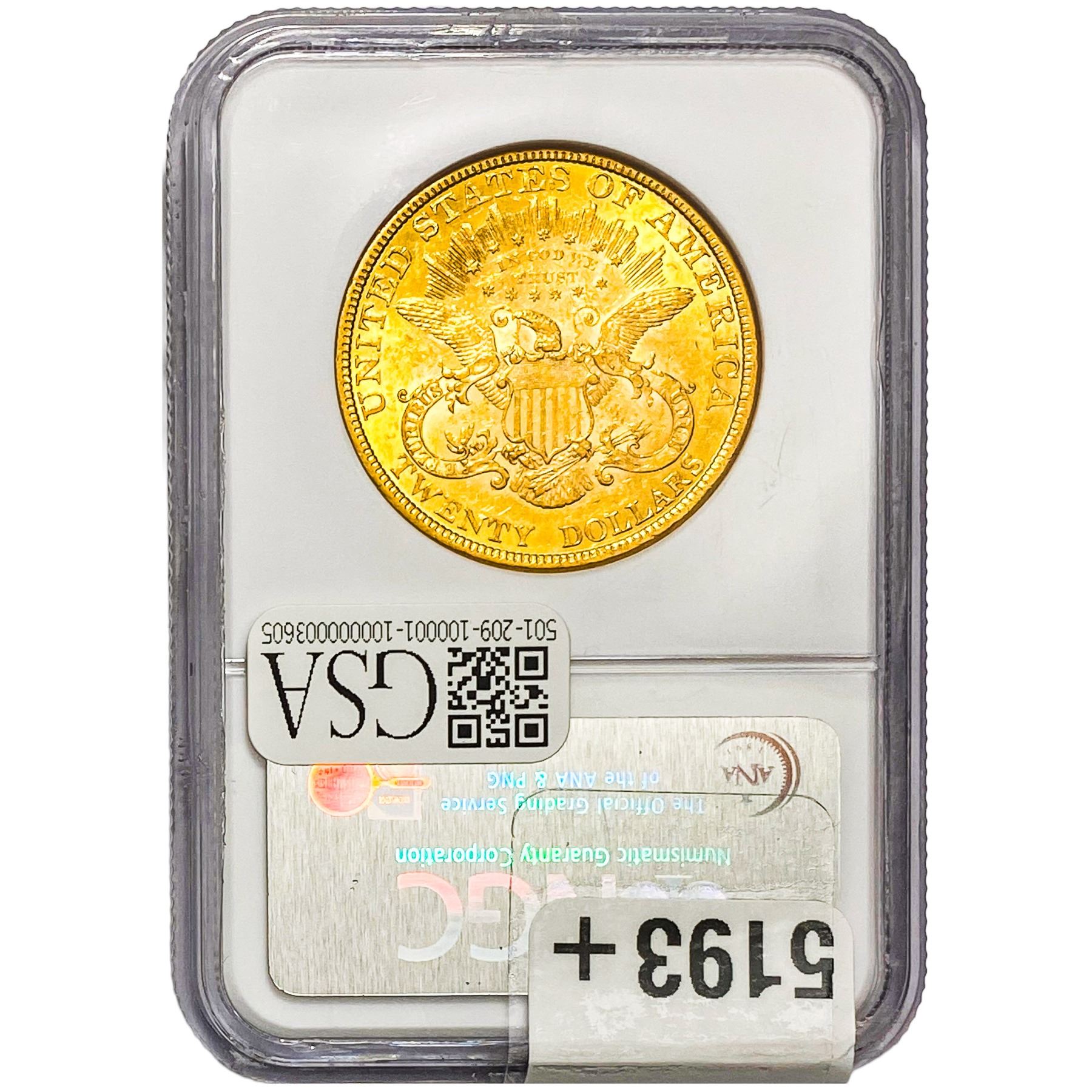 e. Coins sold referencing a third-party grading service are sold “AS IS” without any express or implied warranty, except for a guarantee by GSA that they are genuine. Removal or alteration of the holder, voids all of Bidder’s claims concerning that Product. Certain warranties may be available from the grading services and Bidders are referred to them for further details: Numismatic Guaranty Corporation (NGC), PO Box 4776, Sarasota, FL 34230, www.ngccoin.com/services/writtenguarantee.asp; Professional Coin Grading Services (PCGS), PO Box 9458, Newport Beach, CA 92658, www.pcgs.com/guarantee.html; ANACS, 6555 S. Kenton St., Ste. 303, Englewood, CO 80111; and Independent Coin Grading Co. (ICG), 7901 East Bellview, Ave., Suite 50, Englewood, CO 80111.