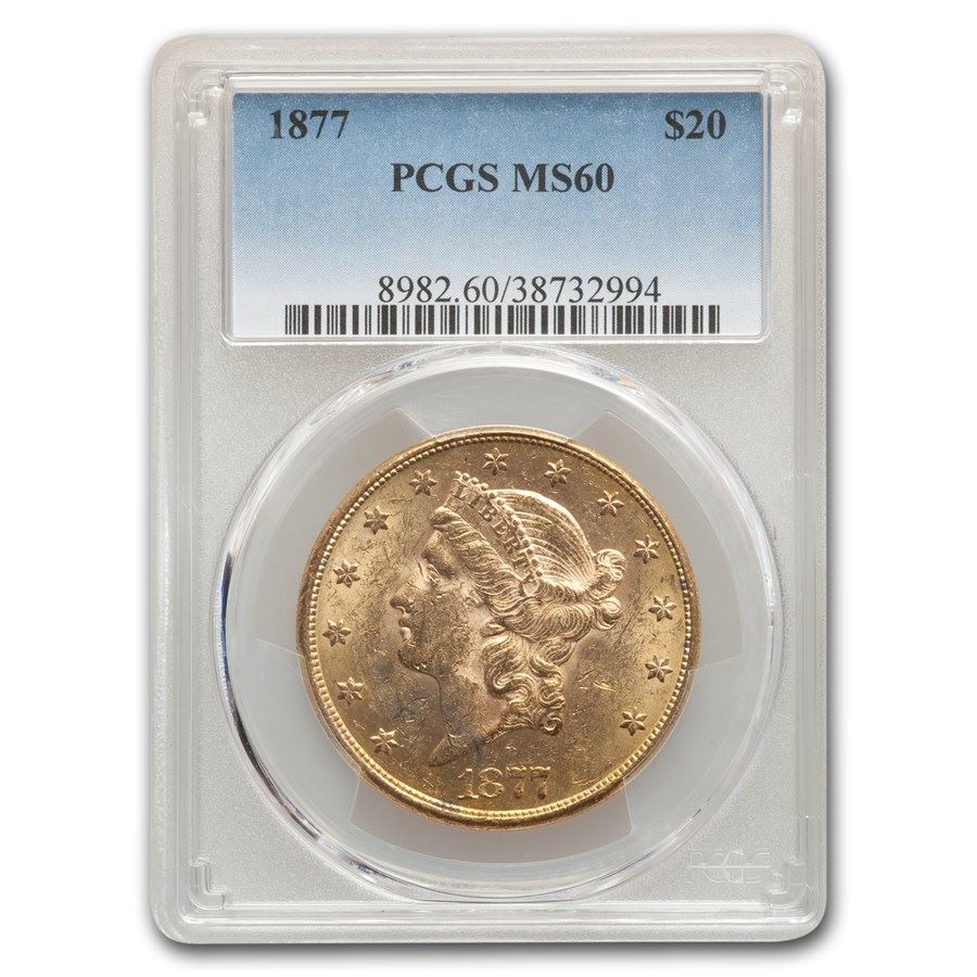 1877 $20 Liberty Gold Double Eagle MS-60 PCGS