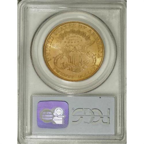 <B>1877 $20 MS61 PCGS.</B></I> A shining, surprisingly flashy example of this initial Type Three double eagle issue, yellow-gold with whispers of green and orange. Several significant vertical abrasions on and near the portrait account for the grade.<BR><BR><B>Coin Engraver:</B> James B. Longacre<BR><BR><b>Shipping:</b> Coins & Currency (<a target="_blank" href="http://www.heritageauctions.com/common/shipping.php">view shipping information</a>)