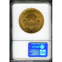<B>1877 $20 MS62 NGC.</B></I> Ex: Eagle Collection. The sparkling, lustrous surfaces show medium orange-gold coloration and the obverse has a number of small abrasions. Sharply struck throughout. A scarce coin in finer grades.<BR><I>Ex: 2002 FUN Signature Sale (Heritage 1/02), lot 4074.</B></I><BR><I>From The Richard J. Chouinard Collection of United States Coins, Part Two.</B></I> Lot:9138