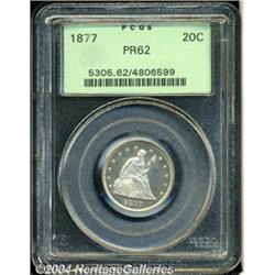 <B>1877<20C> PR62 PCGS.</B></I> This low mintage key is seldom found with surfaces as bright or fields as deeply reflective as on this example. Just the slightest trace of toning is present on each side with a few contact marks and hairlines that account for the grade. <BR><BR><B>Important notice:</B> Heritage usually auctions material at the rate of 200-250 lots per hour. On some occasions eBay Live bid software or the Internet may not be able to keep up with the pace of the auction. We recommend placing a realistic absentee bid now as insurance to avoid disappointment. Occasionally the auctioneer may eliminate or reject an eBay Live bid, and the auctioneer may also reopen a lot after the close of the eBay live bidding (usually because we missed an audience bid), and may reject your bid even if it shows you as the winning bidder. By bidding via eBay Live, you agree that Heritage may award the lot to another bidder at its sole discretion under the circumstances described above or any other reasonable circumstances. Since eBay bids are not shown to us until we open the lot on the floor, we treat those bids just like floor bids. In most cases the floor responds before the eBay bid is presented to us, due to Internet lag time, so for consistency we have made it a policy that floor bids are always considered first over tie eBay live bids. Also please note that all Heritage lots purchased through eBay Live carry a 20% Buyer's Premium. Please make sure you read the Terms and Conditions before you bid. </span></font></tr></table></td></tr></table>