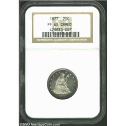<table><tr><td><TABLE cellSpacing=0 cellPadding=0 width="100%" bgColor=#000000 border=0><TBODY> <TR><TD width="100%"><TABLE cellSpacing=1 cellPadding=3 width="100%" border=0><TBODY><TR><TD width="100%" bgColor=#79735c><FONT face=arial color=#ffffff size=3><B>Description</B> </FONT></TD></TR><TR><TD width="100%" bgColor=#ffffff><FONT face=arial size=2><B>1877 20C PR65 Cameo NGC.</B></I> A nice Gem example with frosty devices that are set in moderate contrast to the watery fields. Shades of gunmetal-blue and antique-gold are seen about the border areas. A few scattered hairlines are noticed, but none are out of context with the assigned grade. Only 350 examples of this proof-only issue were originally produced. Population: 4 in 65, 7 finer (7/03). </FONT></TD></TR></TBODY></TABLE></TD></TR></TBODY></TABLE><BR><A name=PricesRealized></A><TABLE cellSpacing=0 cellPadding=0 width="100%" bgColor=#000000 border=0><TBODY><TR><TD width="100%"><TABLE cellSpacing=1 cellPadding=3 width="100%" border=0><TBODY><TR><TD width="100%" bgColor=#79735c><A name=PR><FONT face=arial color=#ffffff size=3><B>Previous Prices from Heritage Auctions</B> </FONT></A></TD></TR><TR><TD bgColor=#f6f6ed><TABLE cellSpacing=0 cellPadding=0 width="100%" border=1><TBODY><TR><TD align=middle width="33%"><B>Date</B></TD><TD align=middle width="33%"><B>Service</B></TD><TD align=middle width="33%"><B>Price</B></TD></TR><TR bgColor=whitesmoke><TD width="33%"><B>03/23/2003</B></TD><TD width="33%">PCGS</TD><TD width="33%">$9,775.00</TD></TR></TBODY></TABLE></TD></TR><TR><TD bgColor=#ffffff><FONT face=arial size=1 ?>PLEASE NOTE: All prices realized reflect the final hammer price PLUS the buyer's premium in auctions that charge a buyer's premium. Each item has a notation at the top of the listing indicating whether that lot included a buyer's premium. Example: A item that sells with a final hammer price of $100 and a 20% buyer's premium will display with a price realized of $120. All information listed is intended to be as accurate as possible, but errors are possible. Please use this guide carefully and inform us of any inaccuracies. </FONT></TD></TR></TBODY></TABLE></TD></TR></TBODY></TABLE><BR><TABLE cellSpacing=0 cellPadding=0 width="100%" bgColor=#000000 border=0><TBODY><TR><TD width="100%"><TABLE cellSpacing=1 cellPadding=3 width="100%" border=0><TBODY><TR><TD width="100%" bgColor=#79735c colSpan=6><FONT face=arial color=#ffffff size=3><B>Price Guide*</B> </FONT></TD></TR><TR bgColor=#f6f6ed><TD align=middle><B>Grade</B> </TD><TD align=middle><B>Coin World<BR>(Trends)</B> </TD><TD align=middle><B>Numismedia<BR>Retail</B> </TD><TD align=middle><B>Numismedia<BR>Wholesale</B> </TD><TD align=middle><B>Coin<BR>Universe</B> </TD><TD align=middle><B>Heritage<BR>Value Index</B> </TD></TR><TR bgColor=#ffffff><TD align=middle>64</TD><TD align=right>---</TD><TD align=right>---</TD><TD align=right>---</TD><TD align=right>---</TD><TD align=right>$3,420.00</TD></TR><TR style="FONT-WEIGHT: bold" bgColor=#cccfdd><TD align=middle>65</TD><TD align=right>---</TD><TD align=right>---</TD><TD align=right>---</TD><TD align=right>---</TD><TD align=right>$7,380.00</TD></TR><TR bgColor=#ffffff><TD align=middle>66</TD><TD align=right>---</TD><TD align=right>---</TD><TD align=right>---</TD><TD align=right>---</TD><TD align=right>---</TD></TR><TR bgColor=#ffffff><TD colSpan=6><FONT size=1>*All information listed is intended to be as accurate as possible, but errors are possible. No item may be returned or refused based on this information which is provided as a service to our customers. You should contact each pricing source directly to determine the accuracy of this information. </FONT></TD></TR></TBODY></TABLE></TD></TR></TBODY></TABLE><BR><TABLE cellSpacing=0 cellPadding=0 width="100%" bgColor=#000000 border=0><TBODY><TR><TD width="100%"><TABLE cellSpacing=1 cellPadding=3 width="100%" border=0><TBODY><TR><TD width="100%" bgColor=#79735c><FONT face=arial color=#ffffff size=3><B>Population Guide</B> </FONT></TD></TR><TR bgColor=#ffffff><TD align=middle><!-- Begin Output of Population Grid--><TABLE cellSpacing=0 cellPadding=0 width="100%" border=0><TBODY><TR><TD vAlign=center><TABLE cellSpacing=0 width="100%" border=1 cellsadding="3"><TBODY><TR><TD vAlign=center><TABLE cellSpacing=0 cellPadding=3 width="100%" border=1><TBODY><TR><TD vAlign=center align=middle bgColor=#f0f1e8 colSpan=2 <CENTER><FONT face=Arial size=2><B>PCGS Pop </B></FONT><CENTER></CENTER></TD><TD vAlign=center align=middle bgColor=#f0f1e8 colSpan=2><CENTER><FONT face=Arial size=2><B>NGC Pop</B></CENTER></FONT></TD></TR><TR><TD vAlign=center><FONT face=Arial size=2>(65)</FONT> </TD><TD vAlign=center align=right><FONT face=Arial size=2>3</FONT> </TD><TD vAlign=center><FONT face=Arial size=2>(65)</FONT> </TD><TD vAlign=center align=right><FONT face=Arial size=2>4</FONT> </TD></TR><TR><TD vAlign=center><FONT face=Arial size=2>(>65)</FONT> </TD><TD vAlign=center align=right><FONT face=Arial size=2>2</FONT> </TD><TD vAlign=center><FONT face=Arial size=2>(>65)</FONT> </TD><TD vAlign=center align=right><FONT face=Arial size=2>7</FONT> </TD></TR></TBODY></TABLE></TD></TR></TBODY></TABLE></TD></TR></TBODY></TABLE><!-- End Output of Population Grid--></TD></TR></TBODY></TABLE></TD></TR></TBODY></TABLE><BR><TABLE cellSpacing=0 cellPadding=0 width="100%" bgColor=#000000 border=0><TBODY><TR> Important notice: Heritage usually auctions material at the rate of 200-250 lots per hour. On some occasions eBay Live bid software or the Internet may not be able to keep up with the pace of the auction. We recommend placing a realistic absentee bid now as insurance to avoid disappointment. Occasionally the auctioneer may eliminate or reject an eBay Live bid, and the auctioneer may also reopen a lot after the close of the eBay live bidding (usually because we missed an audience bid), and may reject your bid even if it shows you as the winning bidder. By bidding via eBay Live, you agree that Heritage may award the l