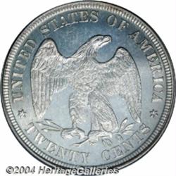 <table><tr><td><table><tr><td>1877 20C PR65 Cameo PCGS. With a mintage of only 350 pieces, the 1877 instantly qualifies as a key issue in the short-lived Twenty Cent series. This is a deeply reflective proof whose devices show a thick overlay of mint frost, producing the desirable cameo effect on each side. Much original brilliance remains despite hints of golden-tan patina overall. With the cameo contrast, this is one of the more attractive 1877 Twenty Cent Pieces we have recently seen, regardless of technical grade. Population: 4 in 65 Cameo, 2 finer (2/04).From the Pleasant Valley Collection. <BR><BR><B>Important notice:</B> Heritage usually auctions material at the rate of 200-250 lots per hour. On some occasions eBay Live bid software or the Internet may not be able to keep up with the pace of the auction. We recommend placing a realistic absentee bid now as insurance to avoid disappointment. Occasionally the auctioneer may eliminate or reject an eBay Live bid, and the auctioneer may also reopen a lot after the close of the eBay live bidding (usually because we missed an audience bid), and may reject your bid even if it shows you as the winning bidder. By bidding via eBay Live, you agree that Heritage may award the lot to another bidder at its sole discretion under the circumstances described above or any other reasonable circumstances. Since eBay bids are not shown to us until we open the lot on the floor, we treat those bids just like floor bids. In most cases the floor responds before the eBay bid is presented to us, due to Internet lag time, so for consistency we have made it a policy that floor bids are always considered first over tie eBay live bids. Also please note that all Heritage lots purchased through eBay Live carry a 20% Buyer's Premium. Please make sure you read the Terms and Conditions before you bid. <BR><BR><B>IMPORTANT ANNOUNCEMENT ABOUT RESERVES:</B> Heritage now divulges all reserves on its web site 7 days before every auction. If you want to know whether the reserve on this lot has been met, and if not, what the reserve amount is, please visit this lot page on the HeritageCoin.com web site, or email: bid@HeritageGalleries.com </span></font></td></tr></table></td></tr></table>