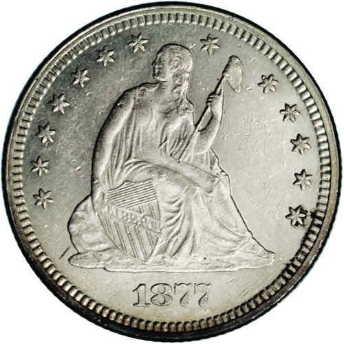 1877 25C AU58 NGC. Type Two Reverse. Delicate gold col 1877[25C] AU58 NGC.
