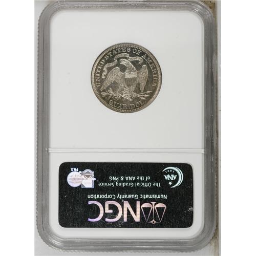 1877 25C PR64 NGC. A moderately mirrored near-Gem that
