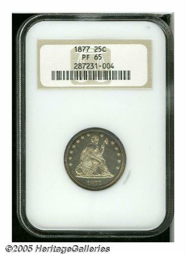 1877 25C PR65 NGC. This lovely proof, one of 510