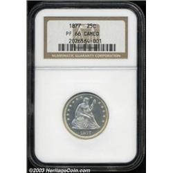 <table><tr><td><TABLE cellSpacing=0 cellPadding=0 width="100%" bgColor=#000000 border=0><TBODY> <TR><TD width="100%"><TABLE cellSpacing=1 cellPadding=3 width="100%" border=0><TBODY><TR><TD width="100%" bgColor=#79735c><FONT face=arial color=#ffffff size=3><B>Description</B> </FONT></TD></TR><TR><TD width="100%" bgColor=#ffffff><FONT face=arial size=2><B>1877 25C PR66 Cameo NGC.</B></I> The 77 in the date is lightly repunched at the peaks of the letters. A brilliant Gem that has frosted devices and deeply mirrored fields. Carefully preserved, and elusive as a mere 510 pieces were struck. Population: 2 in 66, 0 finer (7/03). </FONT></TD></TR></TBODY></TABLE></TD></TR></TBODY></TABLE><BR><A name=PricesRealized></A><TABLE cellSpacing=0 cellPadding=0 width="100%" bgColor=#000000 border=0><TBODY><TR><TD width="100%"><TABLE cellSpacing=1 cellPadding=3 width="100%" border=0><TBODY><TR><TD width="100%" bgColor=#79735c><A name=PR><FONT face=arial color=#ffffff size=3><B>Previous Prices from Heritage Auctions</B> </FONT></A></TD></TR><TR><TD bgColor=#f6f6ed>No Prior Data Recorded </TD></TR><TR><TD bgColor=#ffffff><FONT face=arial size=1 ?>PLEASE NOTE: All prices realized reflect the final hammer price PLUS the buyer's premium in auctions that charge a buyer's premium. Each item has a notation at the top of the listing indicating whether that lot included a buyer's premium. Example: A item that sells with a final hammer price of $100 and a 20% buyer's premium will display with a price realized of $120. All information listed is intended to be as accurate as possible, but errors are possible. Please use this guide carefully and inform us of any inaccuracies. </FONT></TD></TR></TBODY></TABLE></TD></TR></TBODY></TABLE><BR><TABLE cellSpacing=0 cellPadding=0 width="100%" bgColor=#000000 border=0><TBODY><TR><TD width="100%"><TABLE cellSpacing=1 cellPadding=3 width="100%" border=0><TBODY><TR><TD width="100%" bgColor=#79735c colSpan=6><FONT face=arial color=#ffffff size=3><B>Price Guide*</B> </FONT></TD></TR><TR bgColor=#f6f6ed><TD align=middle><B>Grade</B> </TD><TD align=middle><B>Coin World<BR>(Trends)</B> </TD><TD align=middle><B>Numismedia<BR>Retail</B> </TD><TD align=middle><B>Numismedia<BR>Wholesale</B> </TD><TD align=middle><B>Coin<BR>Universe</B> </TD><TD align=middle><B>Heritage<BR>Value Index</B> </TD></TR><TR bgColor=#ffffff><TD align=middle>65</TD><TD align=right>---</TD><TD align=right>---</TD><TD align=right>---</TD><TD align=right>---</TD><TD align=right>$1,640.00</TD></TR><TR style="FONT-WEIGHT: bold" bgColor=#cccfdd><TD align=middle>66</TD><TD align=right>---</TD><TD align=right>---</TD><TD align=right>---</TD><TD align=right>---</TD><TD align=right>---</TD></TR><TR bgColor=#ffffff><TD align=middle>67</TD><TD align=right>---</TD><TD align=right>---</TD><TD align=right>---</TD><TD align=right>---</TD><TD align=right>---</TD></TR><TR bgColor=#ffffff><TD colSpan=6><FONT size=1>*All information listed is intended to be as accurate as possible, but errors are possible. No item may be returned or refused based on this information which is provided as a service to our customers. You should contact each pricing source directly to determine the accuracy of this information. </FONT></TD></TR></TBODY></TABLE></TD></TR></TBODY></TABLE><BR><TABLE cellSpacing=0 cellPadding=0 width="100%" bgColor=#000000 border=0><TBODY><TR><TD width="100%"><TABLE cellSpacing=1 cellPadding=3 width="100%" border=0><TBODY><TR><TD width="100%" bgColor=#79735c><FONT face=arial color=#ffffff size=3><B>Population Guide</B> </FONT></TD></TR><TR bgColor=#ffffff><TD align=middle><!-- Begin Output of Population Grid--><TABLE cellSpacing=0 cellPadding=0 width="100%" border=0><TBODY><TR><TD vAlign=center><TABLE cellSpacing=0 width="100%" border=1 cellsadding="3"><TBODY><TR><TD vAlign=center><TABLE cellSpacing=0 cellPadding=3 width="100%" border=1><TBODY><TR><TD vAlign=center align=middle bgColor=#f0f1e8 colSpan=2 <CENTER><FONT face=Arial size=2><B>PCGS Pop </B></FONT><CENTER></CENTER></TD><TD vAlign=center align=middle bgColor=#f0f1e8 colSpan=2><CENTER><FONT face=Arial size=2><B>NGC Pop</B></CENTER></FONT></TD></TR><TR><TD vAlign=center><FONT face=Arial size=2>(66)</FONT> </TD><TD vAlign=center align=right><FONT face=Arial size=2>1</FONT> </TD><TD vAlign=center><FONT face=Arial size=2>(66)</FONT> </TD><TD vAlign=center align=right><FONT face=Arial size=2>2</FONT> </TD></TR><TR><TD vAlign=center><FONT face=Arial size=2>(>66)</FONT> </TD><TD vAlign=center align=right><FONT face=Arial size=2>0</FONT> </TD><TD vAlign=center><FONT face=Arial size=2>(>66)</FONT> </TD><TD vAlign=center align=right><FONT face=Arial size=2>0</FONT> </TD></TR></TBODY></TABLE></TD></TR></TBODY></TABLE></TD></TR></TBODY></TABLE><!-- End Output of Population Grid--></TD></TR></TBODY></TABLE></TD></TR></TBODY></TABLE><BR><TABLE cellSpacing=0 cellPadding=0 width="100%" bgColor=#000000 border=0><TBODY><TR> Important notice: Heritage usually auctions material at the rate of 200-250 lots per hour. On some occasions eBay Live bid software or the Internet may not be able to keep up with the pace of the auction. We recommend placing a realistic absentee bid now as insurance to avoid disappointment. Occasionally the auctioneer may eliminate or reject an eBay Live bid, and the auctioneer may also reopen a lot after the close of the eBay live bidding (usually because we missed an audience bid), and may reject your bid even if it shows you as the winning bidder. By bidding via eBay Live, you agree that Heritage may award the lot to another bidder at its sole discretion under the circumstances described above or any other reasonable circumstances. Also please note that all Heritage lots purchased through eBay Live carry a 20% Buyer's Premium. Please make sure you read the Terms and Conditions before you bid.</TD></TR></TBODY></TABLE></TD></TR></TBODY></TABLE>