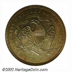 1877 25C PR66 NGC. Curiously enough, this is the first PR66 we have offered of this date. Given the volume and quality of coins that run through this company over the course of a decade, one could take this as a sign of excessive rarity. However, seven pieces have been so graded by NGC with four finer. So, it is just a coincidence. This is a deeply reflective example that has very attractive, deep toning over each side, primarily colored in shades of sea-green, pinkish-rose, and golden. Important notice: We expect to be auctioning lots at the rate of 200-250 per hour. Sometimes eBay Premier live bid software cannot keep up with that pace, so we strongly recommend that you place a realistic proxy bid now as insurance to avoid disappointment. Also please note that all Heritage/CAA lots purchased through eBay Premier carry a 20% Buyer's Premium. Please make sure you read the Terms and Conditions.