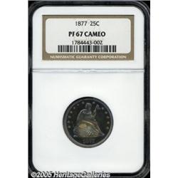 1877 25C PR67 Cameo NGC. Delicious cobalt-blue, g