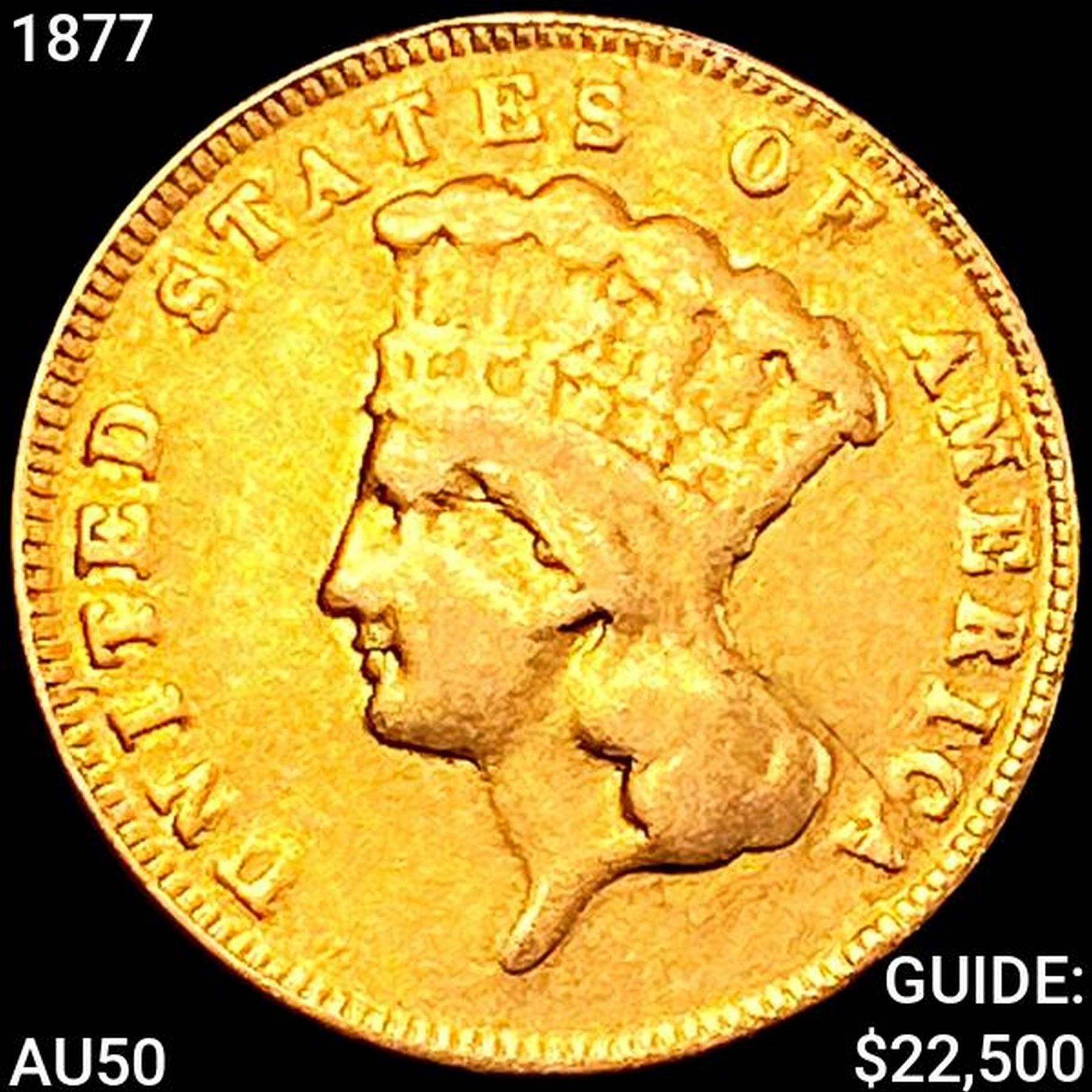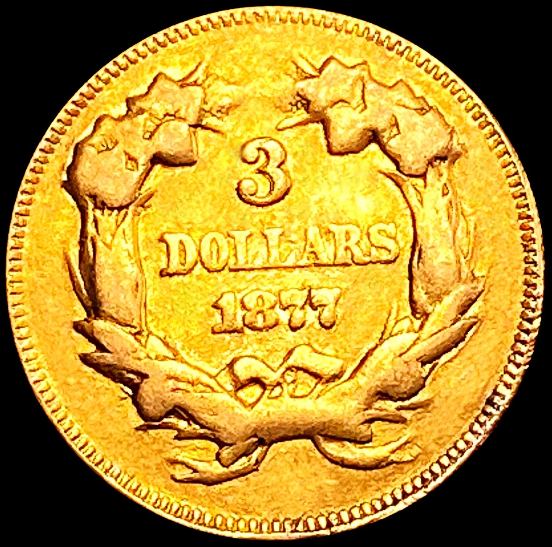 1877 $3 Gold Piece CLOSELY UNCIRCULATED