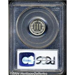 <table><tr><td><table><tr><td>1877 3CN PR64 Deep Cameo PCGS. Fully struck with scattered milky toning on the obverse, a single small contact mark near the reverse center, and a few small dark-green spots on the left side of the reverse. The richly reflective fields and nicely frosted devices are deeply contrasted against one another. <BR><BR><B>Important notice:</B> Heritage usually auctions material at the rate of 200-250 lots per hour. On some occasions eBay Live bid software or the Internet may not be able to keep up with the pace of the auction. We recommend placing a realistic absentee bid now as insurance to avoid disappointment. Occasionally the auctioneer may eliminate or reject an eBay Live bid, and the auctioneer may also reopen a lot after the close of the eBay live bidding (usually because we missed an audience bid), and may reject your bid even if it shows you as the winning bidder. By bidding via eBay Live, you agree that Heritage may award the lot to another bidder at its sole discretion under the circumstances described above or any other reasonable circumstances. Since eBay bids are not shown to us until we open the lot on the floor, we treat those bids just like floor bids. In most cases the floor responds before the eBay bid is presented to us, due to Internet lag time, so for consistency we have made it a policy that floor bids are always considered first over tie eBay live bids. Also please note that all Heritage lots purchased through eBay Live carry a 20% Buyer's Premium. Please make sure you read the Terms and Conditions before you bid. <BR><BR><B>IMPORTANT ANNOUNCEMENT ABOUT RESERVES:</B> Heritage now divulges all reserves on its web site 7 days before every auction. If you want to know whether the reserve on this lot has been met, and if not, what the reserve amount is, please visit this lot page on the HeritageCoin.com web site, or email: bid@HeritageGalleries.com </span></font></td></tr></table></td></tr></table>