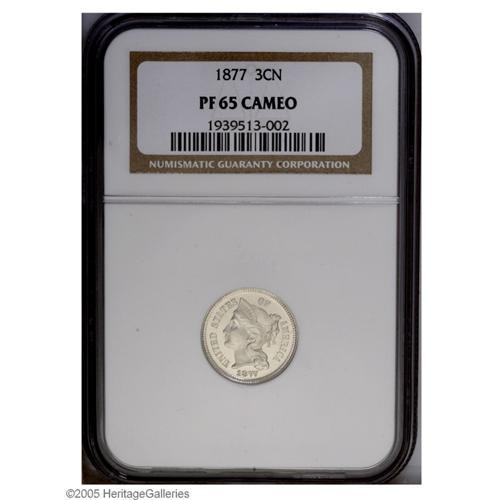 1877 3CN PR65 Cameo NGC. A desirable proof-only issue, 1877[3CN] PR65 Cameo NGC.