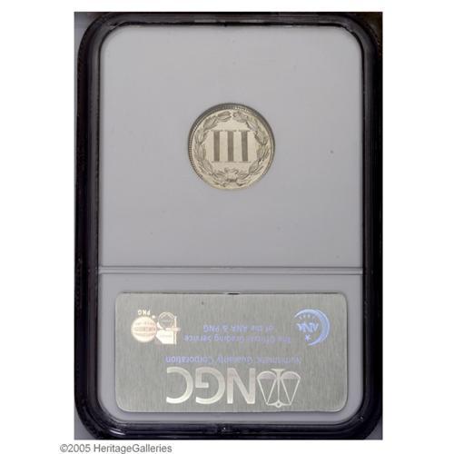 <B>1877<3CN> PR65 Cameo NGC.</B></I> A desirable proof-only issue, one of approximately 510 pieces struck. This solid Gem example is essentially untoned and shows modest depth of reflectivity.