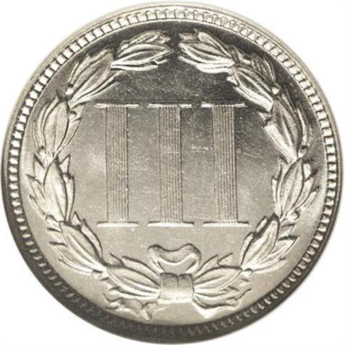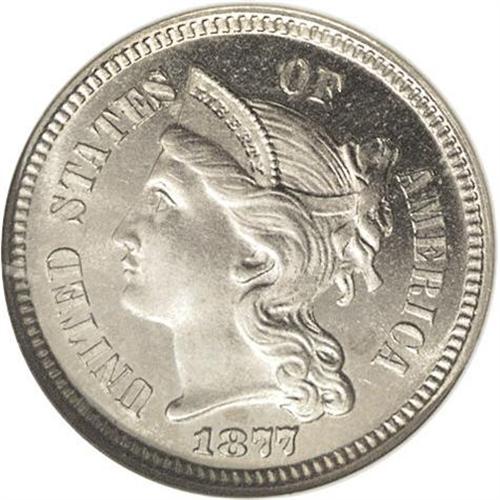 <B>1877<3CN> PR65 Cameo NGC.</B></I> This is the first of four proof-only dates in the three cent nickel denomination. The generally recorded mintage for the issue is 510 coins, based on the mintage of silver coinage during the year, although the actual production was probably a bit higher. The surfaces are exquisite with deeply mirrored fields, lustrous devices, and excellent Cameo contrast, all visible through a thin layer of champagne toning. All of the design elements are sharply detailed, and the result is an aesthetically desirable Gem example of this issue.