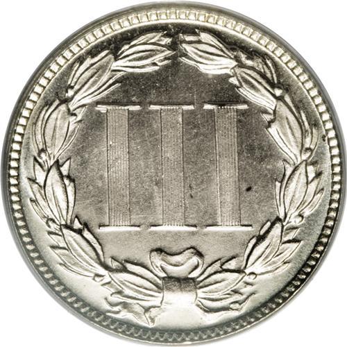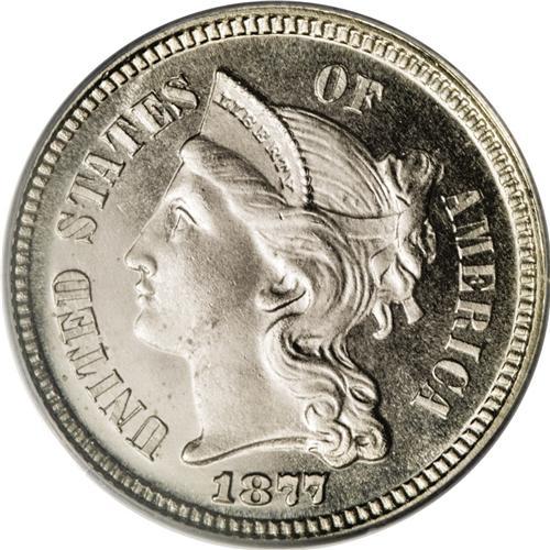1877 3CN PR66 Cameo PCGS. This proof-only issue, with
