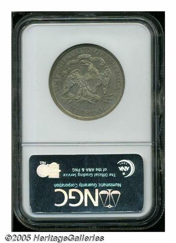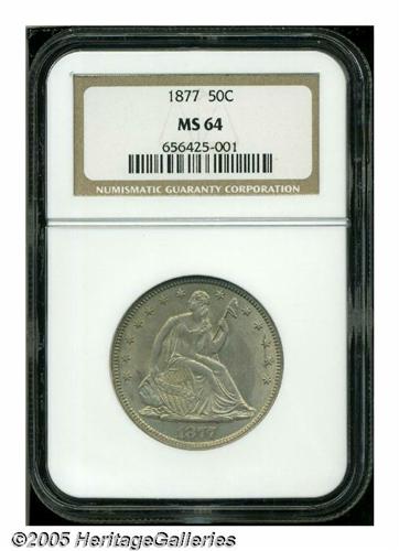<B>1877<50C> MS64 NGC.</B></I> Lovely golden surfaces with faint, near-matte luster. Nicely preserved, with few serious marks. Some light die-clashing is noted beneath the portrait.