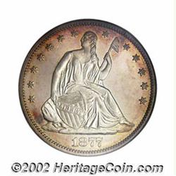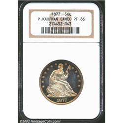 1877 50C PR66 Cameo NGC. Ex: P. Kaufman. Tail Hub Variety II. This hub variety is identifiable by th