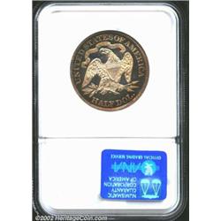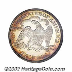 1877 50C PR66 Cameo NGC. Ex: P. Kaufman. Tail Hub Variety II. This hub variety is identifiable by the closed berry on the bottom of the reverse olive branch. Wiley and Bugert (1993) suggest that Charles Barber closed this olive berry in order to distinguish his new hub from the older one, which shows both olive berries open. Most proofs of the 1877 Half Dollar are Tail Hub Variety II, but Breen (1977) asserts that the specimen that appeared as lot 662 in Lester Merkin's sale of March 1968 was Tail Hub Variety I. In an absolute sense, the 1877 is not a rare date, either as a business strike or a proof. That said, we caution bidders that they should expect significant competition for the present specimen due to its status as the finest certified of only eight proof 1877 Halves designated Cameo by NGC (7/02). The centers are untoned--a feature that allows for full appreciation of the excellent field-to-device contrast. With warm orange-russet peripheral iridescence and uncommonly smooth features, this sharp looking example is an original, no-questions Gem.From the Philip Kaufman Collection. Important notice: We expect to be auctioning lots at the rate of 200-250 per hour. Sometimes eBay Premier live bid software cannot keep up with that pace, so we strongly recommend that you place a realistic proxy bid now as insurance to avoid disappointment. Also please note that all Heritage/CAA lots purchased through eBay Premier carry a 20% Buyer's Premium. Please make sure you read the Terms and Conditions.