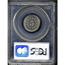<B>1877<5C> PR64 Cameo PCGS.</B></I> Extremely well mirrored for this proof-only issue and a solid Gem except for a multitude of tiny carbon flecks on the reverse. <BR><BR><B>Important notice:</B> Heritage usually auctions material at the rate of 200-250 lots per hour. On some occasions eBay Live bid software or the Internet may not be able to keep up with the pace of the auction. We recommend placing a realistic absentee bid now as insurance to avoid disappointment. Occasionally the auctioneer may eliminate or reject an eBay Live bid, and the auctioneer may also reopen a lot after the close of the eBay live bidding (usually because we missed an audience bid), and may reject your bid even if it shows you as the winning bidder. By bidding via eBay Live, you agree that Heritage may award the lot to another bidder at its sole discretion under the circumstances described above or any other reasonable circumstances. Since eBay bids are not shown to us until we open the lot on the floor, we treat those bids just like floor bids. In most cases the floor responds before the eBay bid is presented to us, due to Internet lag time, so for consistency we have made it a policy that floor bids are always considered first over tie eBay live bids. Also please note that all Heritage lots purchased through eBay Live carry a 20% Buyer's Premium. Please make sure you read the Terms and Conditions before you bid.