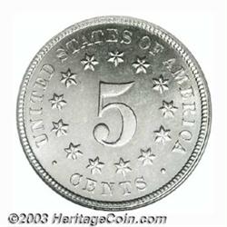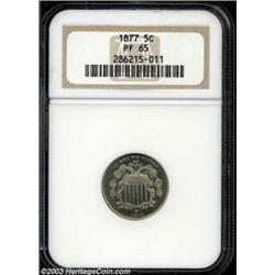 <table><tr><td><TABLE cellSpacing=0 cellPadding=0 width="100%" bgColor=#000000 border=0><TBODY> <TR><TD width="100%"><TABLE cellSpacing=1 cellPadding=3 width="100%" border=0><TBODY><TR><TD width="100%" bgColor=#79735c><FONT face=arial color=#ffffff size=3><B>Description</B> </FONT></TD></TR><TR><TD width="100%" bgColor=#ffffff><FONT face=arial size=2><B>1877 5C PR65 NGC.</B></I> A vibrant Gem proof with excellent reflective qualities appearing on silver-gray surfaces, with a hint of light amber color appearing on the reverse. As a future identifier, one small planchet flake is noted near the obverse border at 10 o'clock.<BR><I>From the Holman Family Collection.</B></I> </FONT></TD></TR></TBODY></TABLE></TD></TR></TBODY></TABLE><BR><A name=PricesRealized></A><TABLE cellSpacing=0 cellPadding=0 width="100%" bgColor=#000000 border=0><TBODY><TR><TD width="100%"><TABLE cellSpacing=1 cellPadding=3 width="100%" border=0><TBODY><TR><TD width="100%" bgColor=#79735c><A name=PR><FONT face=arial color=#ffffff size=3><B>Previous Prices from Heritage Auctions</B> </FONT></A></TD></TR><TR><TD bgColor=#f6f6ed><TABLE cellSpacing=0 cellPadding=0 width="100%" border=1><TBODY><TR><TD align=middle width="33%"><B>Date</B></TD><TD align=middle width="33%"><B>Service</B></TD><TD align=middle width="33%"><B>Price</B></TD></TR><TR bgColor=whitesmoke><TD width="33%"><B>11/23/2002</B></TD><TD width="33%">NGC</TD><TD width="33%">$2,012.50</TD></TR><TR bgColor=whitesmoke><TD width="33%"><B>06/10/2000</B></TD><TD width="33%">PCGS</TD><TD width="33%">$1,955.00</TD></TR><TR bgColor=whitesmoke><TD width="33%"><B>01/09/1999</B></TD><TD width="33%">NGC</TD><TD width="33%">$1,650.00</TD></TR><TR bgColor=whitesmoke><TD width="33%"><B>08/13/1996</B></TD><TD width="33%">NGC</TD><TD width="33%">$1,595.00</TD></TR><TR bgColor=whitesmoke><TD width="33%"><B>10/08/1994</B></TD><TD width="33%">PCGS</TD><TD width="33%">$1,787.50</TD></TR><TR bgColor=whitesmoke><TD width="33%"><B>07/27/1993</B></TD><TD width="33%">PCGS</TD><TD width="33%">$1,485.00</TD></TR><TR bgColor=whitesmoke><TD width="33%"><B>02/01/2001</B></TD><TD width="33%">PCGS</TD><TD width="33%">$2,070.00</TD></TR><TR bgColor=whitesmoke><TD width="33%"><B>01/01/2001</B></TD><TD width="33%">NGC</TD><TD width="33%">$1,955.00</TD></TR><TR bgColor=whitesmoke><TD width="33%"><B>02/01/2000</B></TD><TD width="33%">PCGS</TD><TD width="33%">$2,185.00</TD></TR><TR bgColor=whitesmoke><TD width="33%"><B>01/01/1996</B></TD><TD width="33%">PCGS</TD><TD width="33%">$1,980.00</TD></TR><TR bgColor=whitesmoke><TD width="33%"><B>09/01/1996</B></TD><TD width="33%">PCGS</TD><TD width="33%">$2,090.00</TD></TR><TR bgColor=whitesmoke><TD width="33%"><B>11/01/1997</B></TD><TD width="33%">PCGS</TD><TD width="33%">$1,540.00</TD></TR><TR bgColor=whitesmoke><TD width="33%"><B>08/01/1998</B></TD><TD width="33%">PCGS</TD><TD width="33%">$1,725.00</TD></TR><TR bgColor=whitesmoke><TD width="33%"><B>03/01/1999</B></TD><TD width="33%">PCGS</TD><TD width="33%">$1,725.00</TD></TR></TBODY></TABLE></TD></TR><TR><TD bgColor=#ffffff><FONT face=arial size=1 ?>PLEASE NOTE: All prices realized reflect the final hammer price PLUS the buyer's premium in auctions that charge a buyer's premium. Each item has a notation at the top of the listing indicating whether that lot included a buyer's premium. Example: A item that sells with a final hammer price of $100 and a 20% buyer's premium will display with a price realized of $120. All information listed is intended to be as accurate as possible, but errors are possible. Please use this guide carefully and inform us of any inaccuracies. </FONT></TD></TR></TBODY></TABLE></TD></TR></TBODY></TABLE><BR><TABLE cellSpacing=0 cellPadding=0 width="100%" bgColor=#000000 border=0><TBODY><TR><TD width="100%"><TABLE cellSpacing=1 cellPadding=3 width="100%" border=0><TBODY><TR><TD width="100%" bgColor=#79735c colSpan=6><FONT face=arial color=#ffffff size=3><B>Price Guide*</B> </FONT></TD></TR><TR bgColor=#f6f6ed><TD align=middle><B>Grade</B> </TD><TD align=middle><B>Coin World<BR>(Trends)</B> </TD><TD align=middle><B>Numismedia<BR>Retail</B> </TD><TD align=middle><B>Numismedia<BR>Wholesale</B> </TD><TD align=middle><B>Coin<BR>Universe</B> </TD><TD align=middle><B>Heritage<BR>Value Index</B> </TD></TR><TR bgColor=#ffffff><TD align=middle>64</TD><TD align=right>$3,000.00</TD><TD align=right>---</TD><TD align=right>$1,495.00</TD><TD align=right>$2,100.00</TD><TD align=right>$1,566.25</TD></TR><TR style="FONT-WEIGHT: bold" bgColor=#cccfdd><TD align=middle>65</TD><TD align=right>$3,500.00</TD><TD align=right>---</TD><TD align=right>$1,925.00</TD><TD align=right>$3,000.00</TD><TD align=right>$2,176.67</TD></TR><TR bgColor=#ffffff><TD align=middle>66</TD><TD align=right>$4,500.00</TD><TD align=right>---</TD><TD align=right>$2,925.00</TD><TD align=right>$3,850.00</TD><TD align=right>$2,922.50</TD></TR><TR bgColor=#ffffff><TD colSpan=6><FONT size=1>*All information listed is intended to be as accurate as possible, but errors are possible. No item may be returned or refused based on this information which is provided as a service to our customers. You should contact each pricing source directly to determine the accuracy of this information. </FONT></TD></TR></TBODY></TABLE></TD></TR></TBODY></TABLE><BR><TABLE cellSpacing=0 cellPadding=0 width="100%" bgColor=#000000 border=0><TBODY><TR><TD width="100%"><TABLE cellSpacing=1 cellPadding=3 width="100%" border=0><TBODY><TR><TD width="100%" bgColor=#79735c><FONT face=arial color=#ffffff size=3><B>Population Guide</B> </FONT></TD></TR><TR bgColor=#ffffff><TD align=middle><!-- Begin Output of Population Grid--><TABLE cellSpacing=0 cellPadding=0 width="100%" border=0><TBODY><TR><TD vAlign=center><TABLE cellSpacing=0 width="100%" border=1 cellsadding="3"><TBODY><TR><TD vAlign=center><TABLE cellSpacing=0 cellPadding=3 width="100%" border=1><TBODY><TR><TD vAlign=center align=middle bgColor=#f0f1e8 colSpan=2 <CENTER><FONT face=Arial size=2><B>PCGS Pop </B></FO