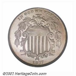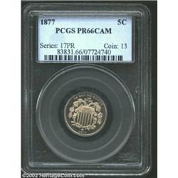 1877 5C PR66 Cameo PCGS. Not only is this coin the finest 1877 Nickel in this sale, but it is also a