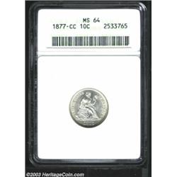 <TABLE cellSpacing=0 cellPadding=0 width="100%" bgColor=#000000 border=0><TBODY><TR><TD width="100%"><TABLE cellSpacing=1 cellPadding=3 width="100%" border=0><TBODY><TR><TD width="100%" bgColor=#79735c><FONT face=arial color=#ffffff size=3><B>Description</B> </FONT></TD></TR><TR><TD width="100%" bgColor=#ffffff><FONT face=arial size=2><B>1877-CC 10C MS64 ANACS.</B></I> A brilliant and highly lustrous near-Gem. Beautifully preserved and attractive. The reverse is well preserved, while the obverse field has faint luster grazes. Struck from clashed dies. A 'common' Carson City issue, but nonetheless scarce in this lofty grade. </FONT></TD></TR></TBODY></TABLE></TD></TR></TBODY></TABLE><BR><A name=PricesRealized></A><TABLE cellSpacing=0 cellPadding=0 width="100%" bgColor=#000000 border=0><TBODY><TR><TD width="100%"><TABLE cellSpacing=1 cellPadding=3 width="100%" border=0><TBODY><TR><TD width="100%" bgColor=#79735c><A name=PR><FONT face=arial color=#ffffff size=3><B>Previous Prices from Heritage Auctions</B> </FONT></A></TD></TR><TR><TD bgColor=#f6f6ed><TABLE cellSpacing=0 cellPadding=0 width="100%" border=1><TBODY><TR><TD align=middle width="33%"><B>Date</B></TD><TD align=middle width="33%"><B>Service</B></TD><TD align=middle width="33%"><B>Price</B></TD></TR><TR bgColor=whitesmoke><TD width="33%"><B>04/27/2002</B></TD><TD width="33%">PCGS</TD><TD width="33%">$603.75</TD></TR><TR bgColor=whitesmoke><TD width="33%"><B>01/13/2002</B></TD><TD width="33%">PCGS</TD><TD width="33%">$587.65</TD></TR><TR bgColor=whitesmoke><TD width="33%"><B>04/24/1999</B></TD><TD width="33%">PCGS</TD><TD width="33%">$352.00</TD></TR><TR bgColor=whitesmoke><TD width="33%"><B>01/04/1995</B></TD><TD width="33%">PCGS</TD><TD width="33%">$467.50</TD></TR><TR bgColor=whitesmoke><TD width="33%"><B>04/27/2002</B></TD><TD width="33%">NGC</TD><TD width="33%">$488.75</TD></TR><TR bgColor=whitesmoke><TD width="33%"><B>02/23/2001</B></TD><TD width="33%">NGC</TD><TD width="33%">$460.00</TD></TR><TR bgColor=whitesmoke><TD width="33%"><B>07/29/1997</B></TD><TD width="33%">NGC</TD><TD width="33%">$253.00</TD></TR><TR bgColor=whitesmoke><TD width="33%"><B>05/02/1997</B></TD><TD width="33%">NGC</TD><TD width="33%">$319.00</TD></TR><TR bgColor=whitesmoke><TD width="33%"><B>08/13/1996</B></TD><TD width="33%">NGC</TD><TD width="33%">$319.00</TD></TR><TR bgColor=whitesmoke><TD width="33%"><B>07/27/1993</B></TD><TD width="33%">NGC</TD><TD width="33%">$495.00</TD></TR><TR bgColor=whitesmoke><TD width="33%"><B>09/21/1996</B></TD><TD width="33%">NGC</TD><TD width="33%">$440.00</TD></TR></TBODY></TABLE></TD></TR><TR><TD bgColor=#ffffff><FONT face=arial size=1 ?>PLEASE NOTE: All prices realized reflect the final hammer price PLUS the buyer's premium in auctions that charge a buyer's premium. Each item has a notation at the top of the listing indicating whether that lot included a buyer's premium. Example: A item that sells with a final hammer price of $100 and a 20% buyer's premium will display with a price realized of $120. All information listed is intended to be as accurate as possible, but errors are possible. Please use this guide carefully and inform us of any inaccuracies. </FONT></TD></TR></TBODY></TABLE></TD></TR></TBODY></TABLE><BR><TABLE cellSpacing=0 cellPadding=0 width="100%" bgColor=#000000 border=0><TBODY><TR><TD width="100%"><TABLE cellSpacing=1 cellPadding=3 width="100%" border=0><TBODY><TR><TD width="100%" bgColor=#79735c colSpan=6><FONT face=arial color=#ffffff size=3><B>Price Guide*</B> </FONT></TD></TR><TR bgColor=#f6f6ed><TD align=middle><B>Grade</B> </TD><TD align=middle><B>Coin World<BR>(Trends)</B> </TD><TD align=middle><B>Numismedia<BR>Retail</B> </TD><TD align=middle><B>Numismedia<BR>Wholesale</B> </TD><TD align=middle><B>Coin<BR>Universe</B> </TD><TD align=middle><B>Heritage<BR>Value Index</B> </TD></TR><TR bgColor=#ffffff><TD align=middle>63</TD><TD align=right>$275.00</TD><TD align=right>$378.00</TD><TD align=right>$315.00</TD><TD align=right>$260.00</TD><TD align=right>$208.88</TD></TR><TR style="FONT-WEIGHT: bold" bgColor=#cccfdd><TD align=middle>64</TD><TD align=right>$600.00</TD><TD align=right>$594.00</TD><TD align=right>$475.00</TD><TD align=right>$325.00</TD><TD align=right>$400.56</TD></TR><TR bgColor=#ffffff><TD align=middle>65</TD><TD align=right>---</TD><TD align=right>---</TD><TD align=right>$840.00</TD><TD align=right>$1,300.00</TD><TD align=right>$989.50</TD></TR><TR bgColor=#ffffff><TD colSpan=6><FONT size=1>*All information listed is intended to be as accurate as possible, but errors are possible. No item may be returned or refused based on this information which is provided as a service to our customers. You should contact each pricing source directly to determine the accuracy of this information. </FONT></TD></TR></TBODY></TABLE></TD></TR></TBODY></TABLE><BR><TABLE cellSpacing=0 cellPadding=0 width="100%" bgColor=#000000 border=0><TBODY><TR><TD width="100%"><TABLE cellSpacing=1 cellPadding=3 width="100%" border=0><TBODY><TR><TD width="100%" bgColor=#79735c><FONT face=arial color=#ffffff size=3><B>Population Guide</B> </FONT></TD></TR><TR bgColor=#ffffff><TD align=middle><!-- Begin Output of Population Grid--><TABLE cellSpacing=0 cellPadding=0 width="100%" border=0><TBODY><TR><TD vAlign=center><TABLE cellSpacing=0 width="100%" border=1 cellsadding="3"><TBODY><TR><TD vAlign=center><TABLE cellSpacing=0 cellPadding=3 width="100%" border=1><TBODY><TR><TD vAlign=center align=middle bgColor=#f0f1e8 colSpan=2 <CENTER><FONT face=Arial size=2><B>PCGS Pop </B></FONT><CENTER></CENTER></TD><TD vAlign=center align=middle bgColor=#f0f1e8 colSpan=2><CENTER><FONT face=Arial size=2><B>NGC Pop</B></CENTER></FONT></TD></TR><TR><TD vAlign=center><FONT face=Arial size=2>(64)</FONT> </TD><TD vAlign=center align=right><FONT face=Arial size=2>50</FONT> </TD><TD vAlign=center><FONT face=Arial size=2>(64)</FONT> </TD><TD vAlign=center align=right><FONT face=Arial size=2>68</FONT> </TD></TR><TR><TD vAlign=center><FONT face=