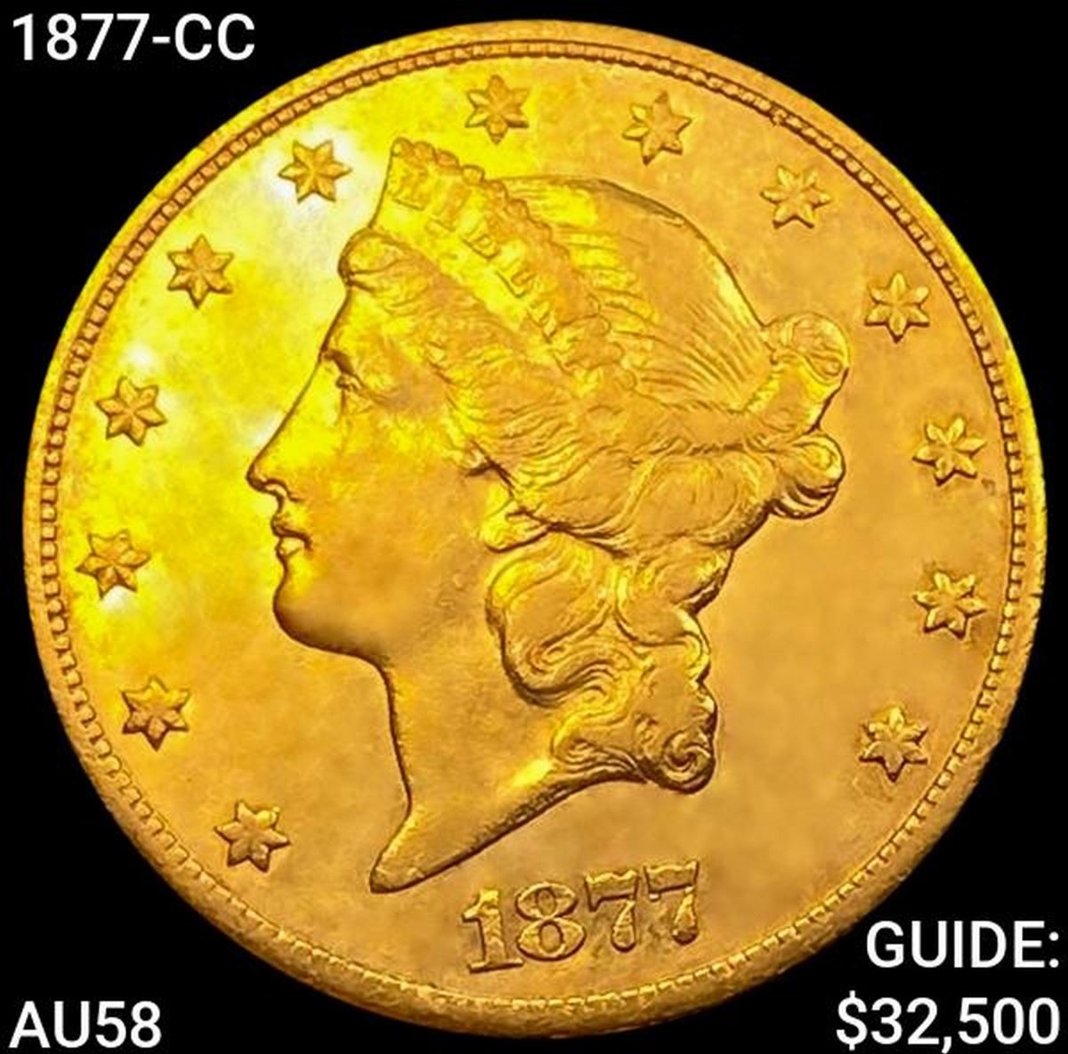 1877-CC $20 Gold Double Eagle CHOICE AU