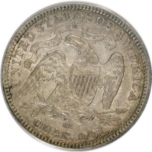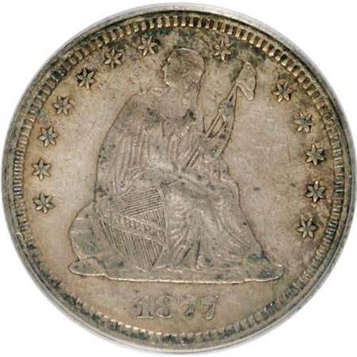 <B>1877-CC 25C AU50 PCGS.</B></I> PCGS Population (6/367). NGC Census: (8/315). Mintage: 4,192,000. Numismedia Wsl. Price for NGC/PCGS coin in AU50: $145. (#5505)<BR><BR><B>Coin Engraver:</B> Christian Gobrecht<BR><BR><b>Shipping:</b> Coins & Currency (<a target="_blank" href="http://www.heritageauctions.com/common/shipping.php">view shipping information</a>)