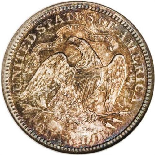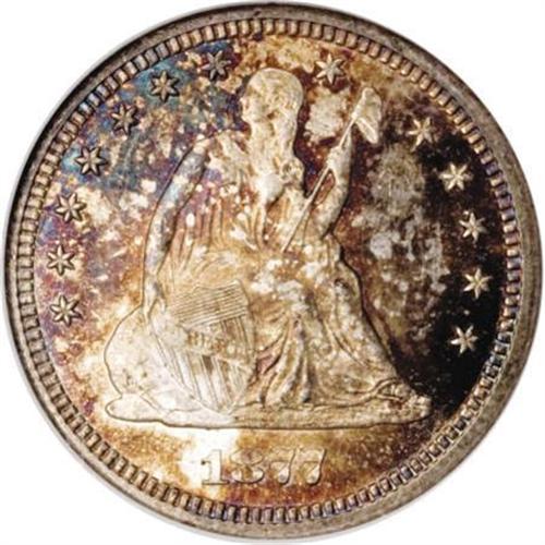<B>1877-CC 25C MS65 NGC.</B></I> With a mintage of more than 4 million pieces, the 1877-CC is one of the few Carson City quarters that can be considered a type coin. The mint luster on this piece is bright and shines forcefully through the rich, variegated golden-rose and russet toning that is seen over each side with occasional patches of original silver still showing also. Sharply struck.<BR><BR><B>Coin Engraver:</B> Christian Gobrecht<BR><BR><b>Shipping:</b> Coins & Currency (<a target="_blank" href="http://www.heritageauctions.com/common/shipping.php">view shipping information</a>)