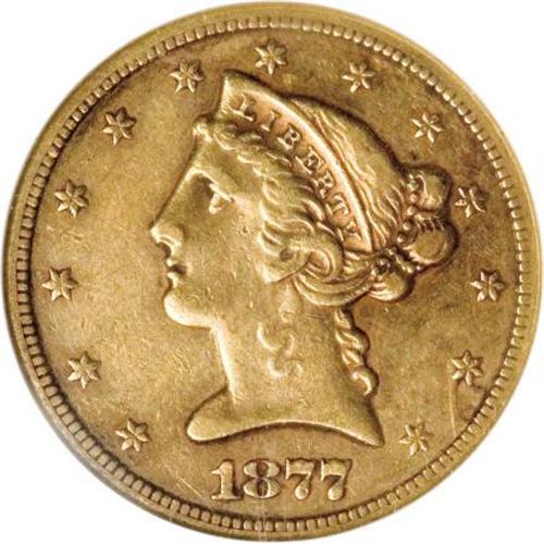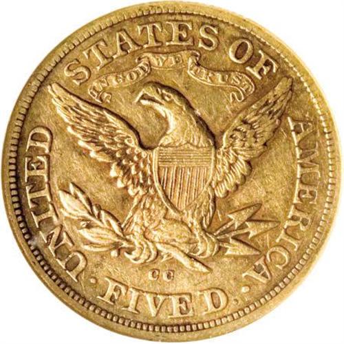 <B>1877-CC $5 XF45 NGC.</B></I> This moderately circulated piece shows a decent, if not full, strike on both sides, and there are relatively few mentionable abrasions for a gold coin from the rough-and-tumble 1870s West with 15 points of wear. The amber-gold surfaces are attractive and accented with charcoal-gray around the devices and within the recesses.<BR><BR><B>Coin Engraver:</B> Christian Gobrecht<BR><BR><b>Shipping:</b> Coins & Currency (<a target="_blank" href="http://www.heritageauctions.com/common/shipping.php">view shipping information</a>)