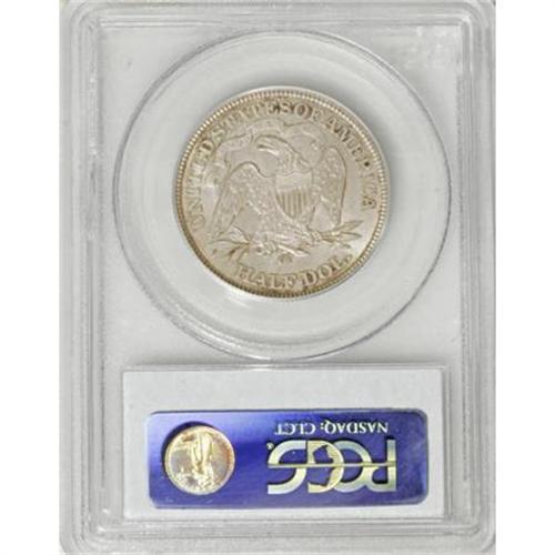 <B>1877-CC 50C MS64 PCGS.</B></I> Type Two Reverse. Soft, satiny luster shines beneath the rich patina on this Carson City minor. The obverse displays elements of rose, orange, and plum, while the reverse has similar peripheral toning around a sky-blue center. Population: 39 in 64, 21 finer (9/07).<BR><BR><B>Coin Engraver:</B> Christian Gobrecht<BR><BR><b>Shipping:</b> Coins & Currency (<a target="_blank" href="http://www.heritageauctions.com/common/shipping.php">view shipping information</a>)