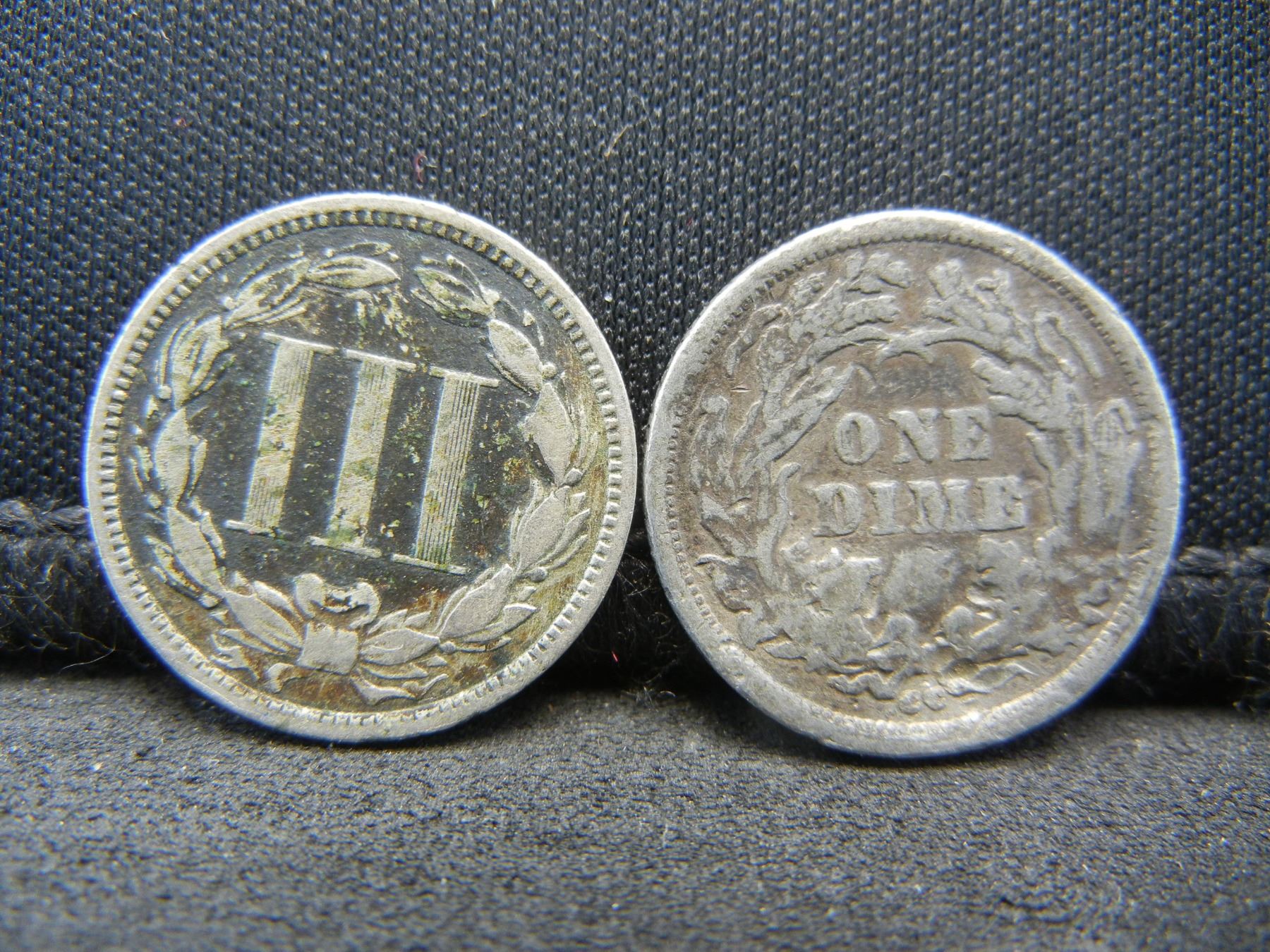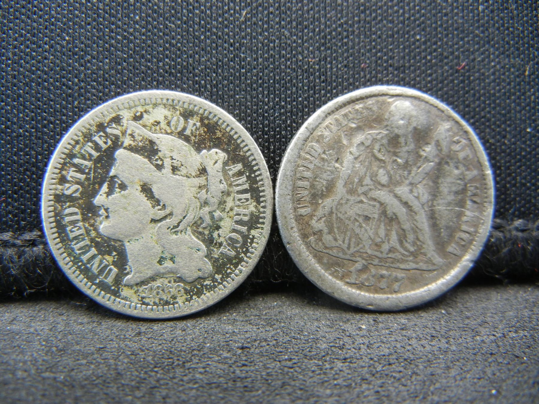 1877 CC Seated Dime Damaged 1868 Three Cent Nickel