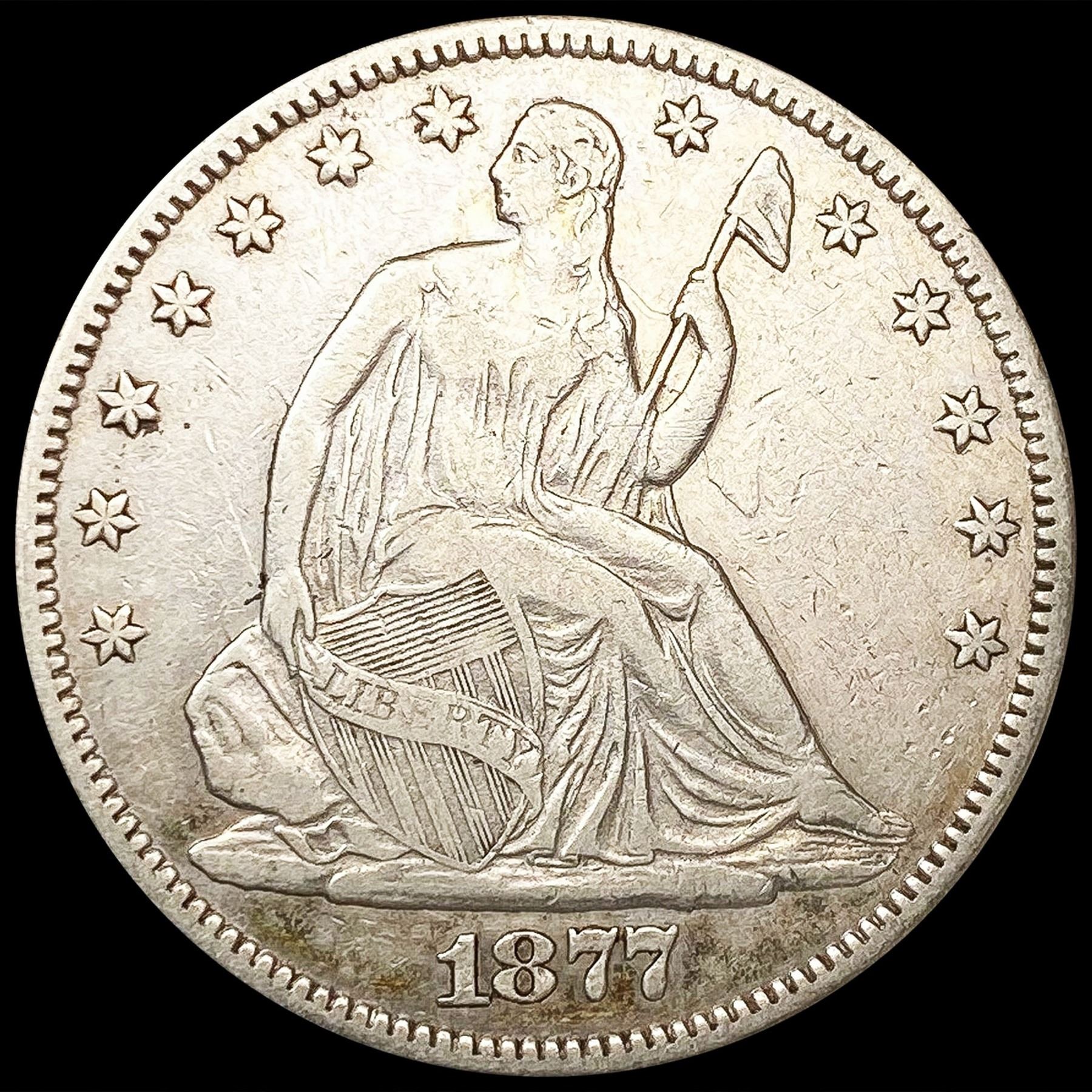 1877-CC Seated Liberty Half Dollar ABOUT UNCIRCULA