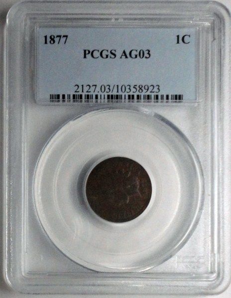 1877 INDIAN ONE CENT PCGS AG3 NICE, EST. $450.00-475.00