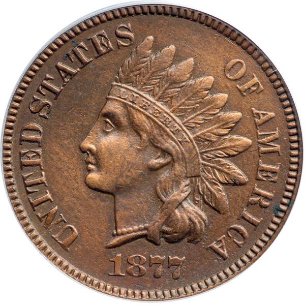 1877 Indian Head Cent. PCGS graded Genuine. Our grade is Sharpness of AU, cleaned years ago. Popular Key Date to the Indian series with only 852,500 produced (PCGS # 2127) .