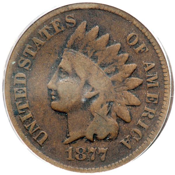 1877 Indian Head Cent. PCGS graded VG-8. Even brown toning. Popular key date (PCGS # 2127) .