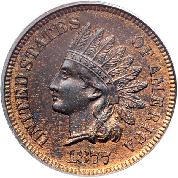 1877. PCGS graded Proof 63 Red & Brown PQ. CAC Approved. About 25% mint red. Well struck and choice. Popular key date. Only 900 struck in Proof. This date attracts a lot of attention (PCGS # 2319) .