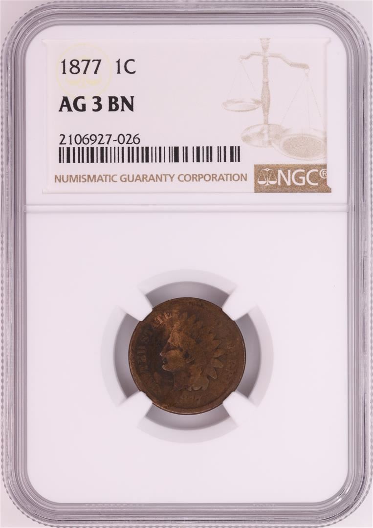 One 1877 Indian Head Cent Coin NGC AG3BN. NGC Certified.
