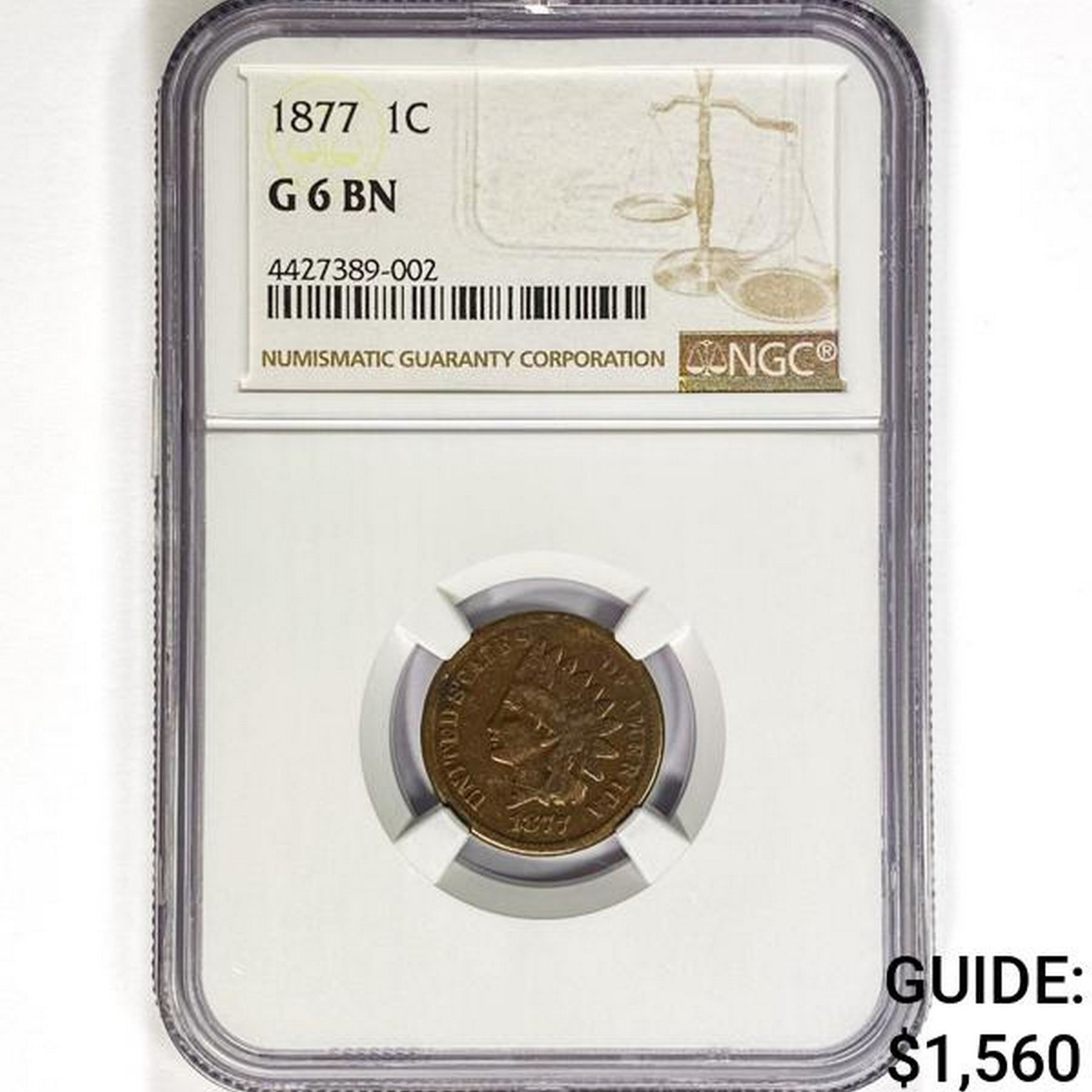 1877 Indian Head Cent NGC G6 BN