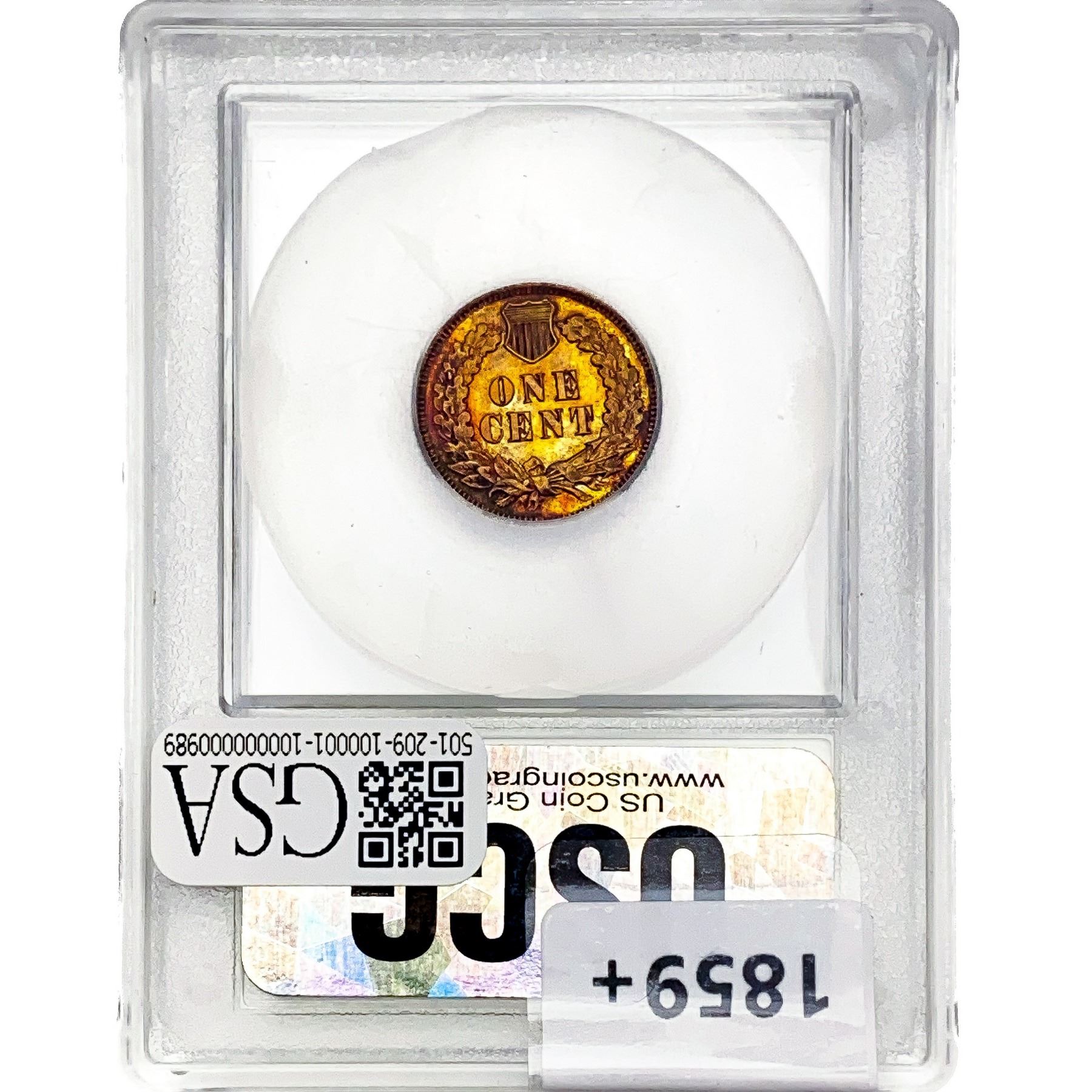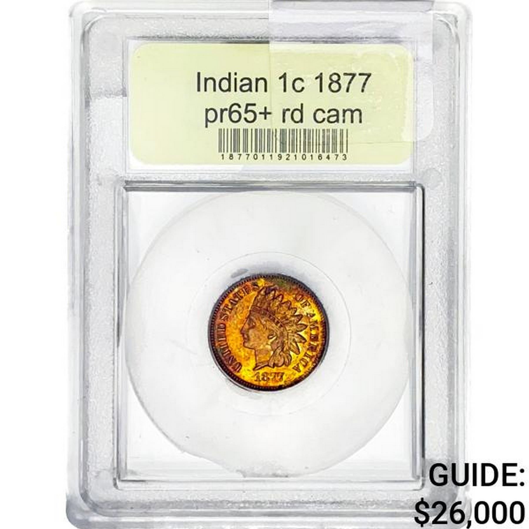 1877 Indian Head Cent USCG PR65+ RD CAM