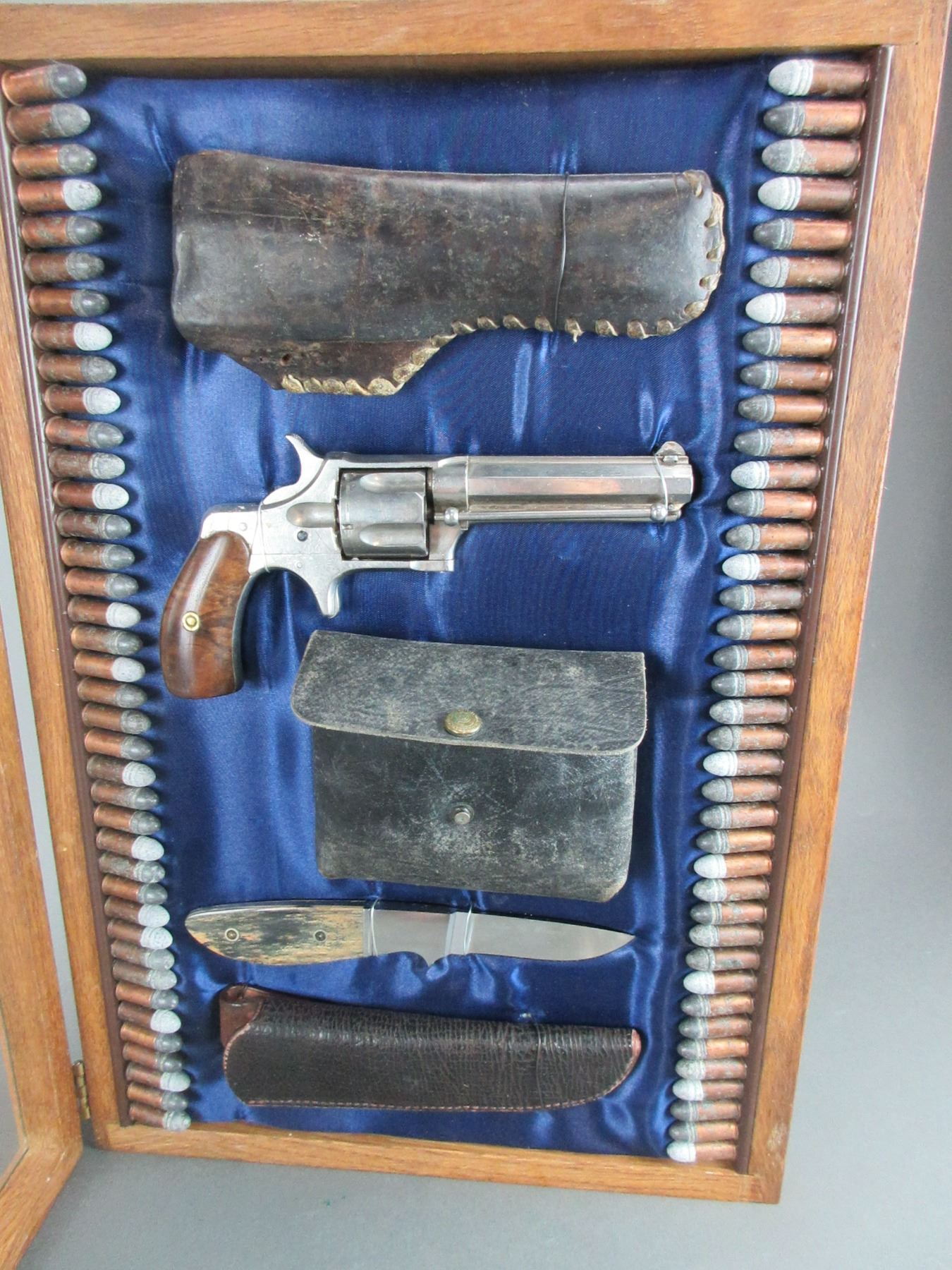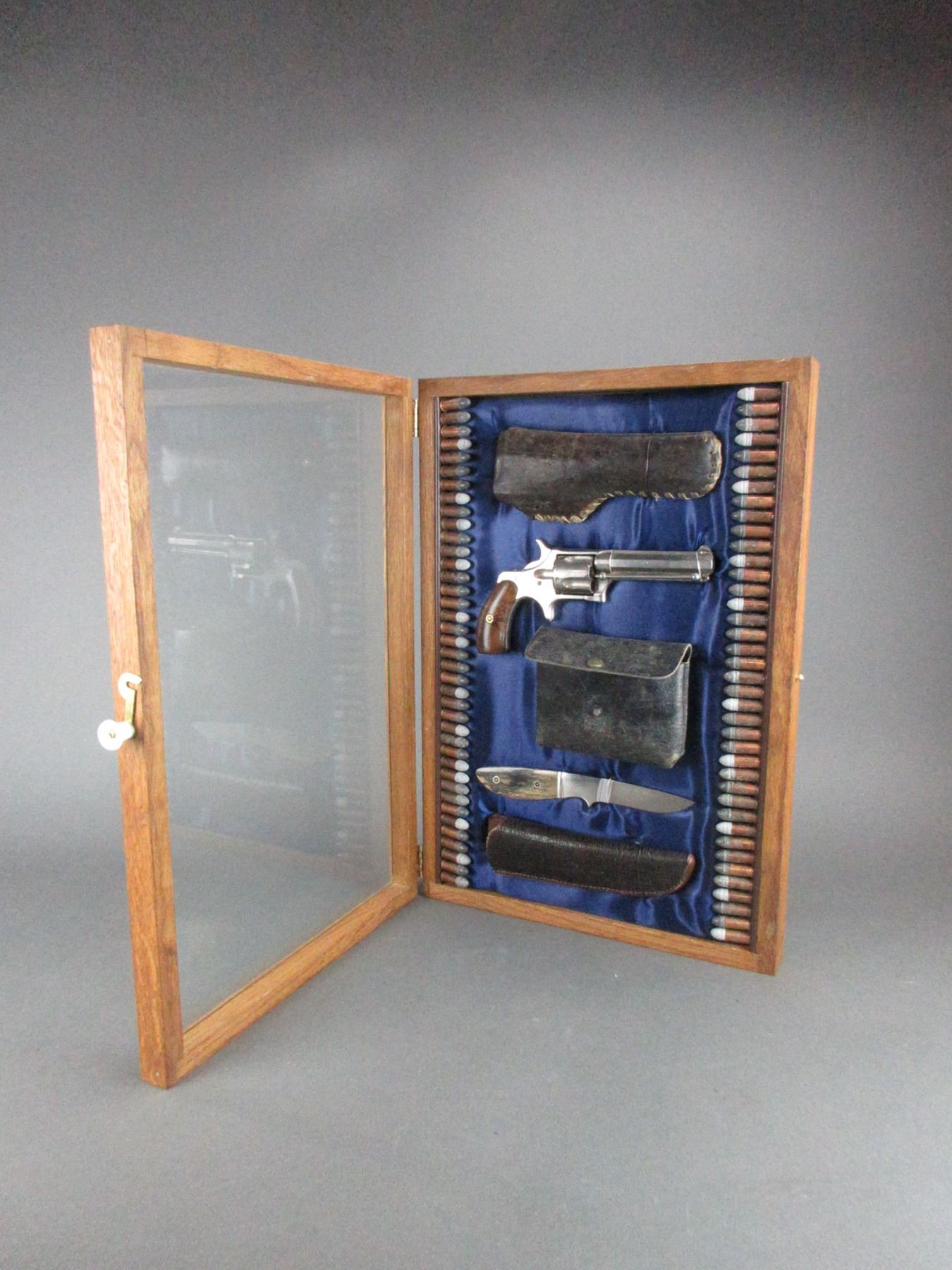 1877 Remington Smoot Nickel 5 Shot Revolver With Family History In A Shadow Box- .32- 3.75" Barrel- Holster- Shell Case- Whitefish Maker Knife With Mammoth Tusk Handle- Sheath- Ammo- Fair Condition- #NA